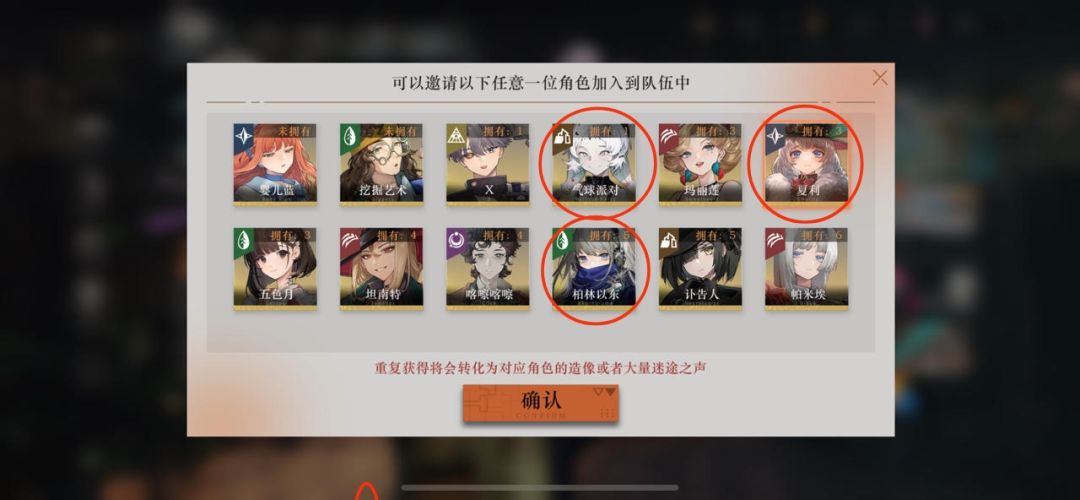 【重返未来】鬃毛二期角色选择