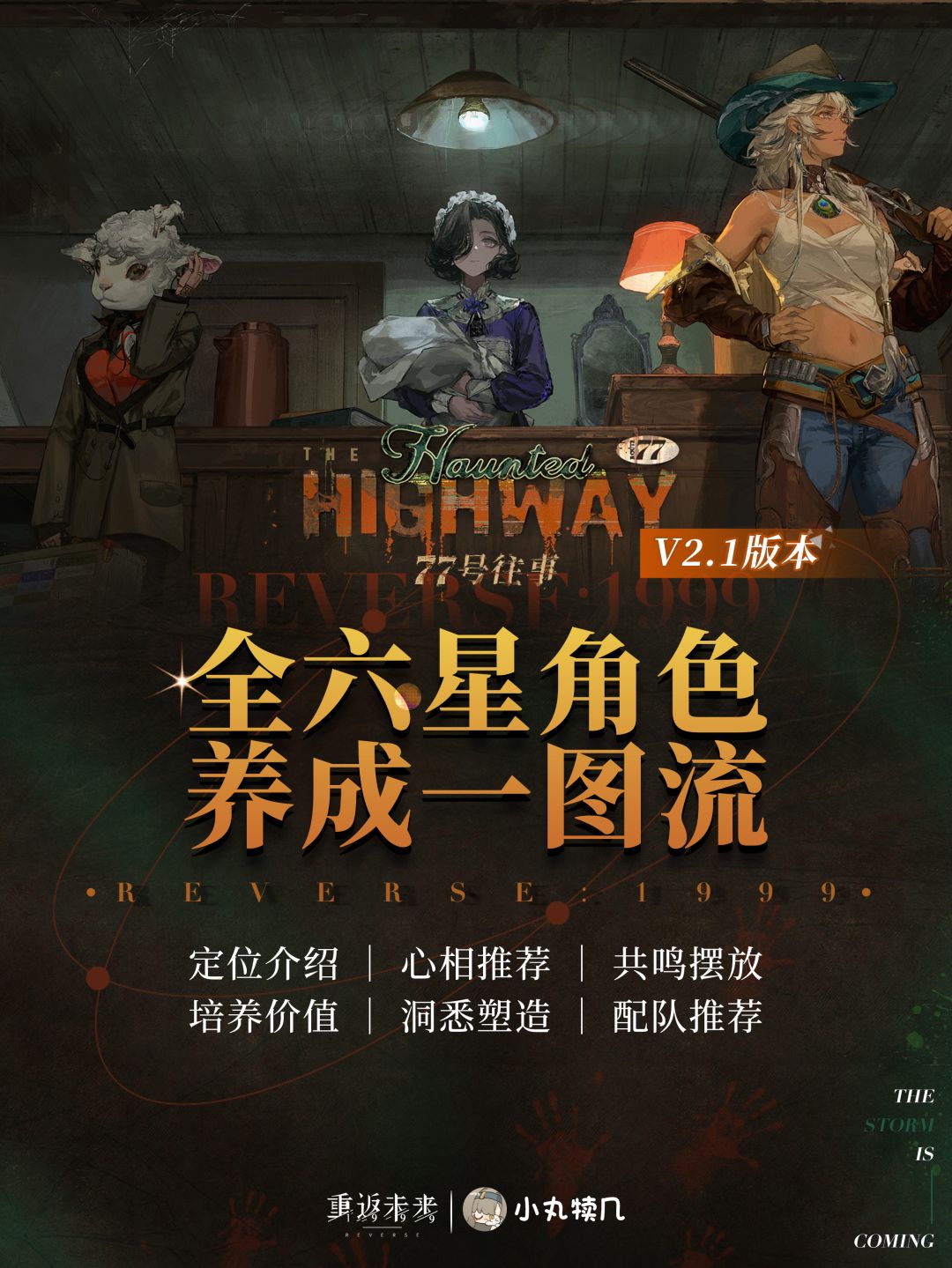 Tada,这里是小丸~ V2.1版本的大合集来咯! 以下就是优化后的全角色一图流攻略<重返未来1999 V2.1版本-77号往事>『全6星角色一图流』养成攻略 —————————————————— 一图流V2.1.9版本『更新日志』: 【角色顺序】 1.按照[木->灵->兽->智->岩->星]的顺序排列角色。 【界面部分】 1. 保留了往期版本的大部分界面,适配了新版本的UI主题。 2. 随着版本