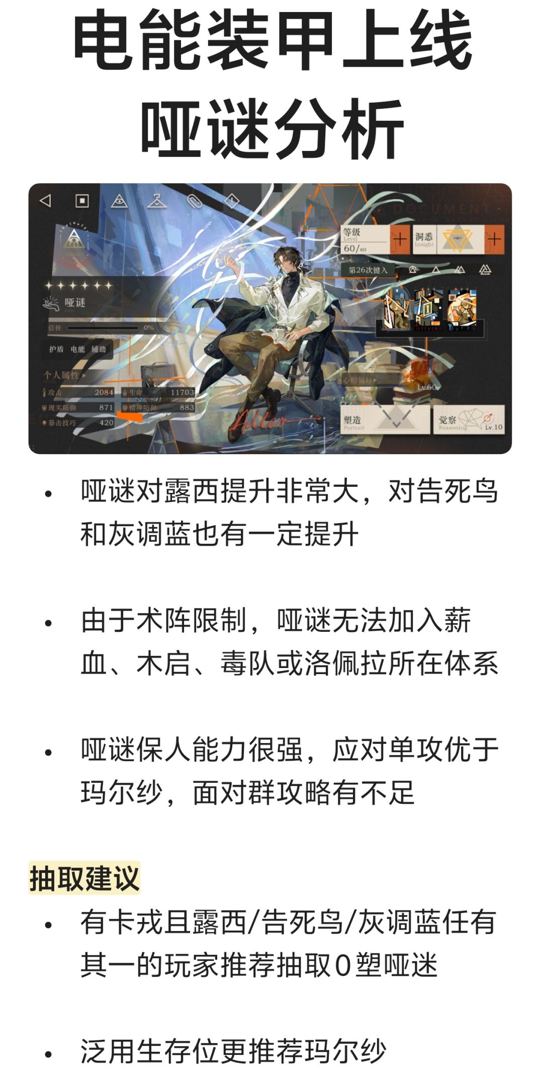 「哑谜」角色养成&抽取建议 | 重返未来