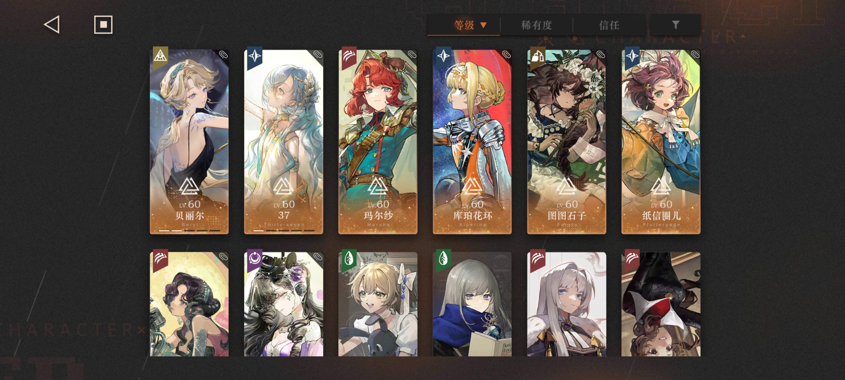 入坑买了个一百多抽的自抽号,号里带了娜娜和37,看攻略都说巡游版本马上来了就一直攒着没抽,鸭妈卡池大保底吃满200抽换了一只才2塑送的随机六星运气还不错随了个圈儿,然后混池出了图图和库柏(幸好没重复) 都说灰娜队很强但抽灰还要抽卡戎 直接选择放弃等余晖队友现在补了余晖队的142d和玛尔莎 还剩60抽左右接下来就等新年限定了os:前期过主线一直用的37娜娜追击队 所以