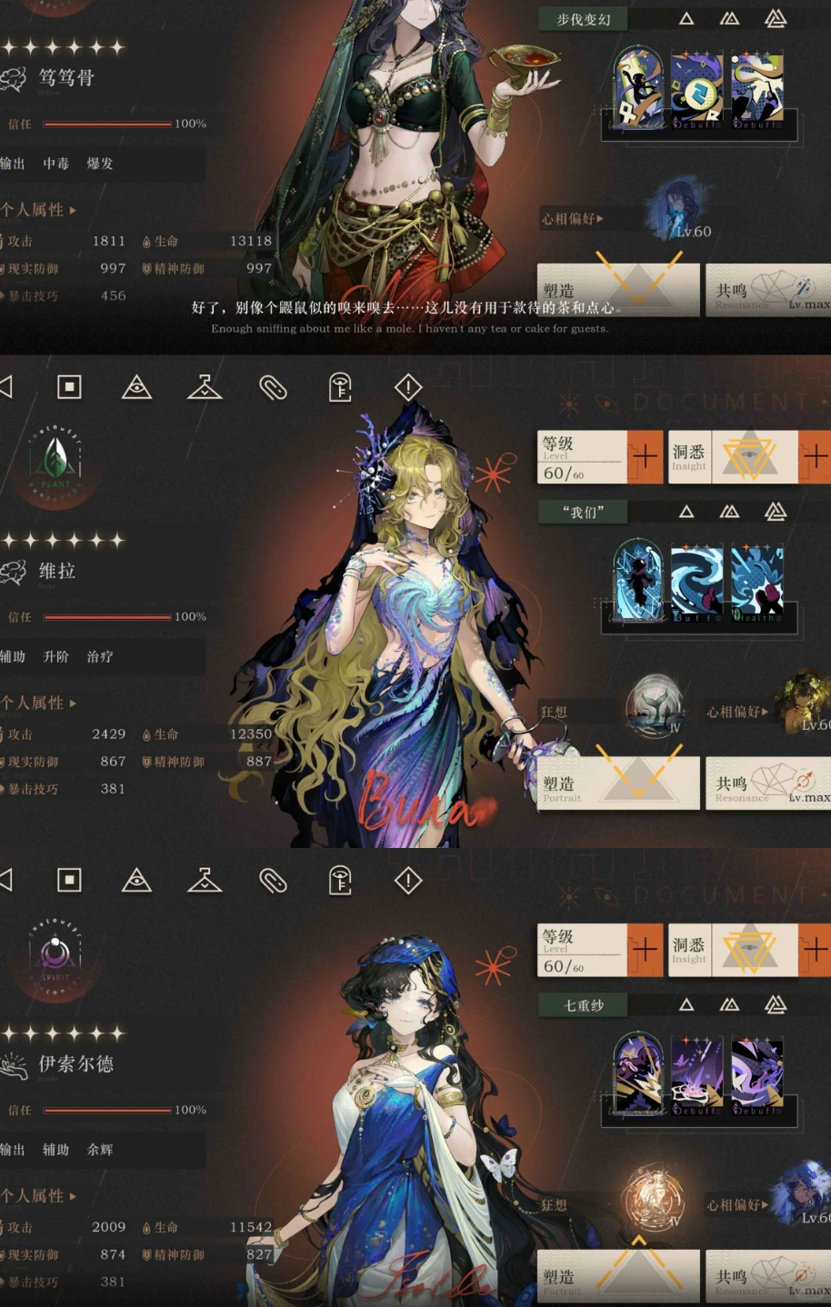 从贝丽尔池子入坑,到即将伊戈尔登场四十多天的体验简直是一言难尽前期资源可谓是什么都缺,角色想拉到60满还得精打细算,心相就更别提,彩球抠搜导致心相换不出,启寤严重不足。开荒资源这块sl真是顶级阳谋刚把一个角色拉的差不多,新的卡池又来了,一个接一个,真是有一种被赶鸭子上架的感觉然后是关于最近的大💩臆想潮,难度调整前那点雨滴跟贡品似的,现在下放到还好,然