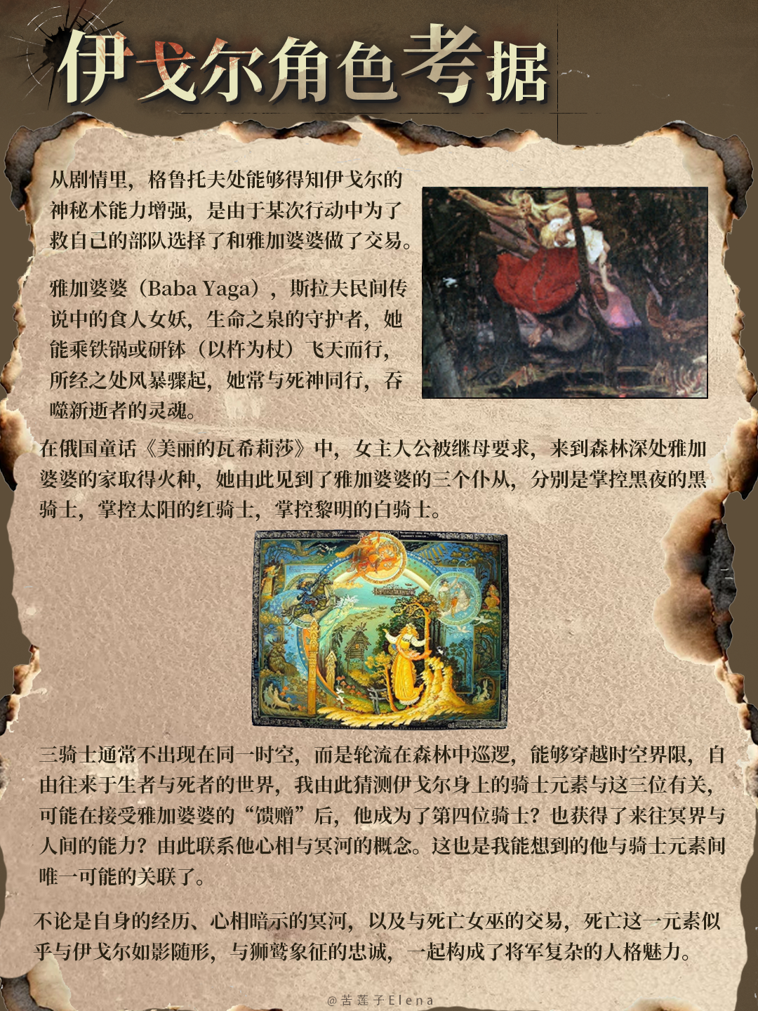 军装的元素,哥萨克骑兵的故事。死亡与冥河,狮鹫与忠诚,雅加婆婆的三骑士传说。 欢迎收看本期的伊戈尔角色考据!大家抽到将军了吗~ 喜欢本期考据可以点赞关注支持一下!祝大家抽卡十连双金~我们下期见!#重返未来1999 #重返未来1999攻略 #重返未来1999考据 #重返未来远征记 #重返未来伊戈尔