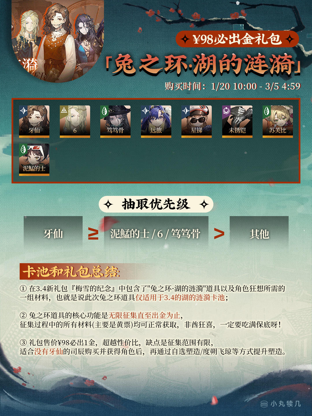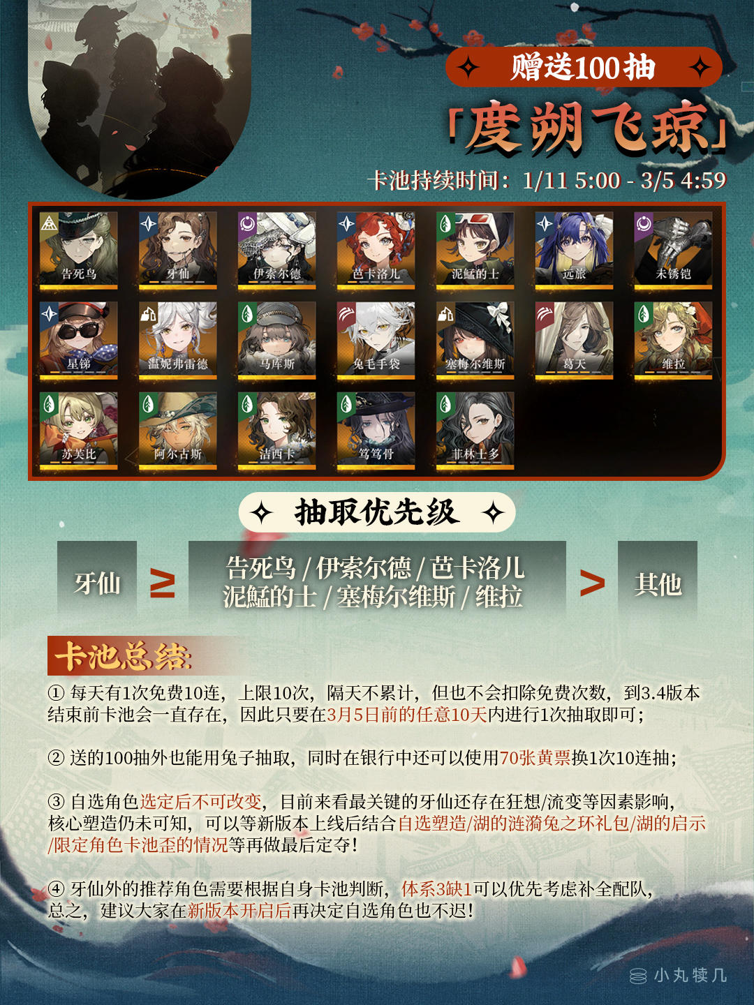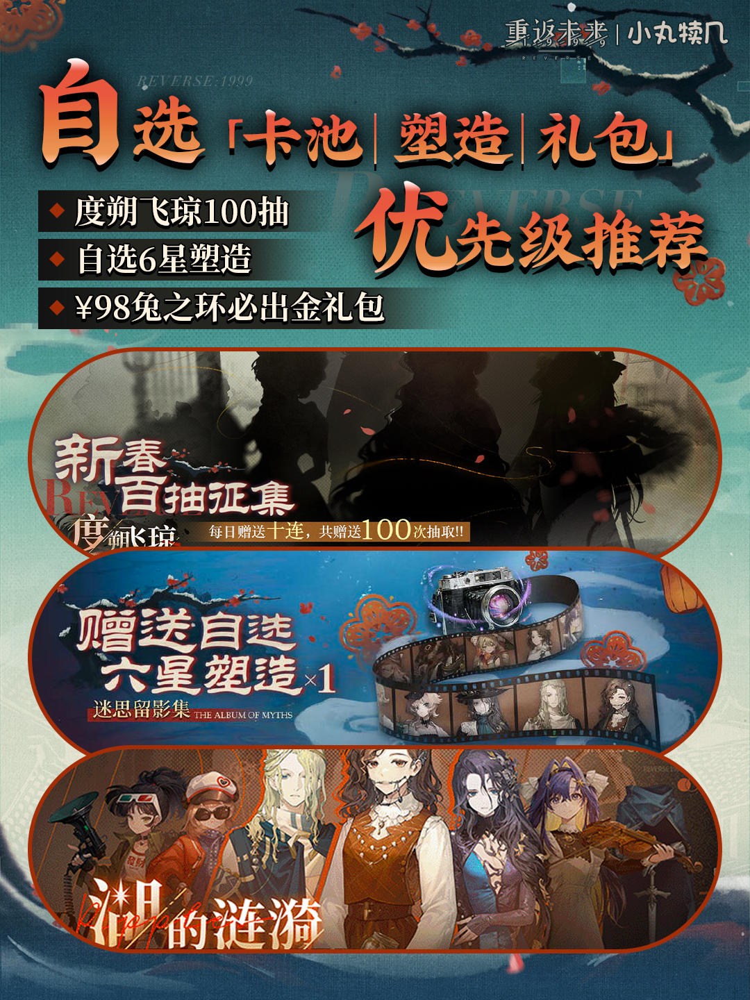 “乌檐白知岁深,枯荣渡见春心。”“何处寻长生,何以谓长生。”“梅落,梅落,落下年光几重。”下面是3.4新春版本「不老春」的版本内容信息!请各位司辰详阅!!提前祝大家新年快乐!!祝大家都能抽到想要的角色!!【这次的福利真的空前多!!💧「兑换码」*会在评论区单独放出以便大家复制!