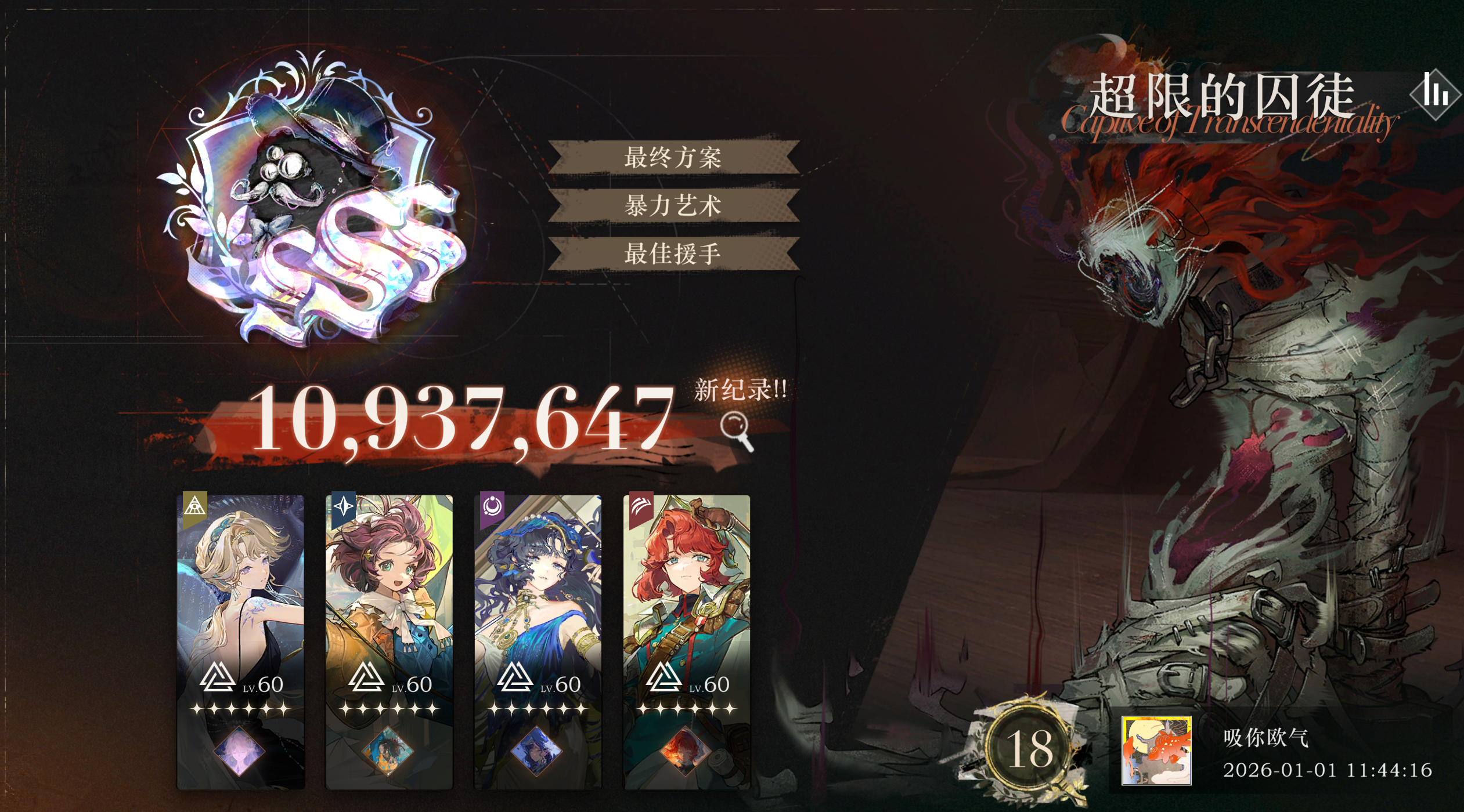 差点忘了发了……记录贴不能断啊!!!第二个boss边看番边打的,打完直接点出去了忘了截配队截图了,又懒的再打就这样了,第三个boss直接挂机破千万了就这样吧,本来就是图鉴党0塑玩家也不要求啥高分 #重返未来1999 #重返未来1999日常分享