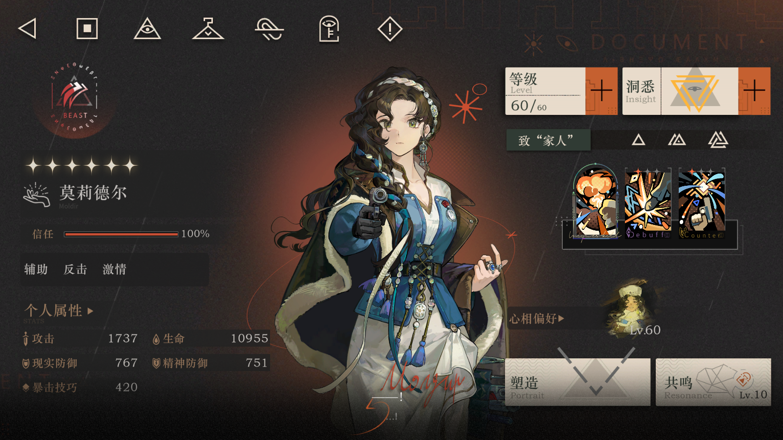 一、角色分析莫莉德尔可以花费较少牌权提供高额的仪式增伤、暴击率,同时还能为仪式队带来更多的行动点和更快速的激情循环二、省流版总结专属仪式队激情和行动拐提高全队大招回转速度不吃牌权,给队伍提供增伤BUFF三、心相选择首选【家庭指导员】,不仅可以在反击后提升自身仪式威力还能根据全队消耗的激情点提高我方全体暴击创伤,满增幅可以提供24%仪式威力全队提升24%暴击创伤,次选【美丽新世界】