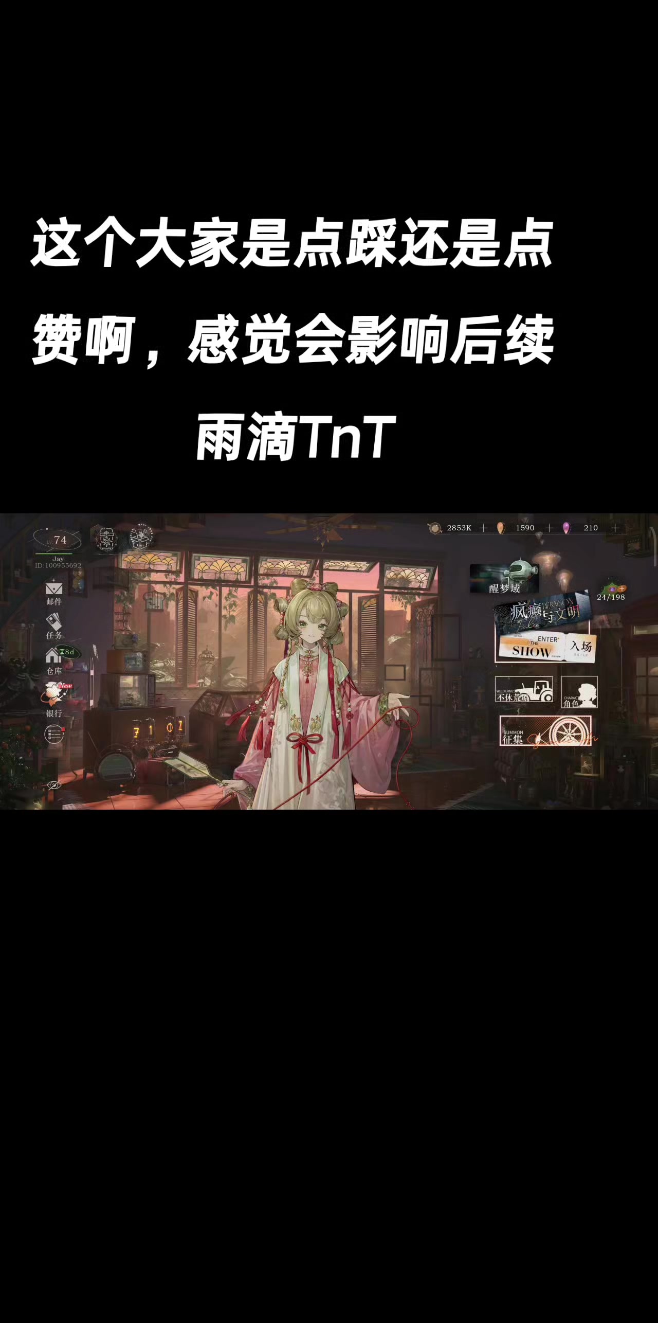 我好爱虚神真的又强又符合xp啊,人设也很喜欢,看到pv就有点后悔为了曲娘下了个小保底的水,不过曲娘也很xp就算了吧爱了。虽然导演没抽留了100来抽,可惜sl开始杀熟了接近百抽才1只,没水了塑造只能等以后再说了寄