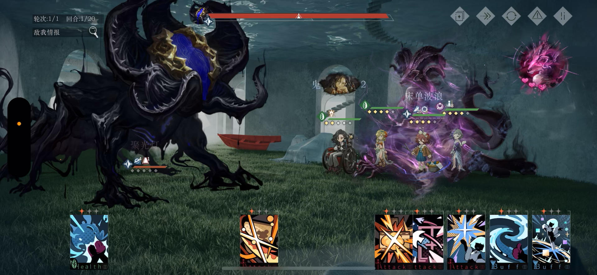 ①前3回合完全公式,照着打,刚好第4回合都能开大招。 ②背后灵技能每回合都要开,给我方上[明辨],顺便减敌方buff。 ③第5回合在攻击次数足够削减左边[倾力]的情况下,37分一个单体攻击打右边的怪来控血。 ④眩晕回合通过移动、合牌恢复激情,优先恢复37和纸信圈儿。 ⑤第10回合纸信圈儿必须开大,要在10-11回合之间尽可能削减左边[倾力],否则12回合被眩晕将束手无策,这是全局的一个关键凹点。 ⑥