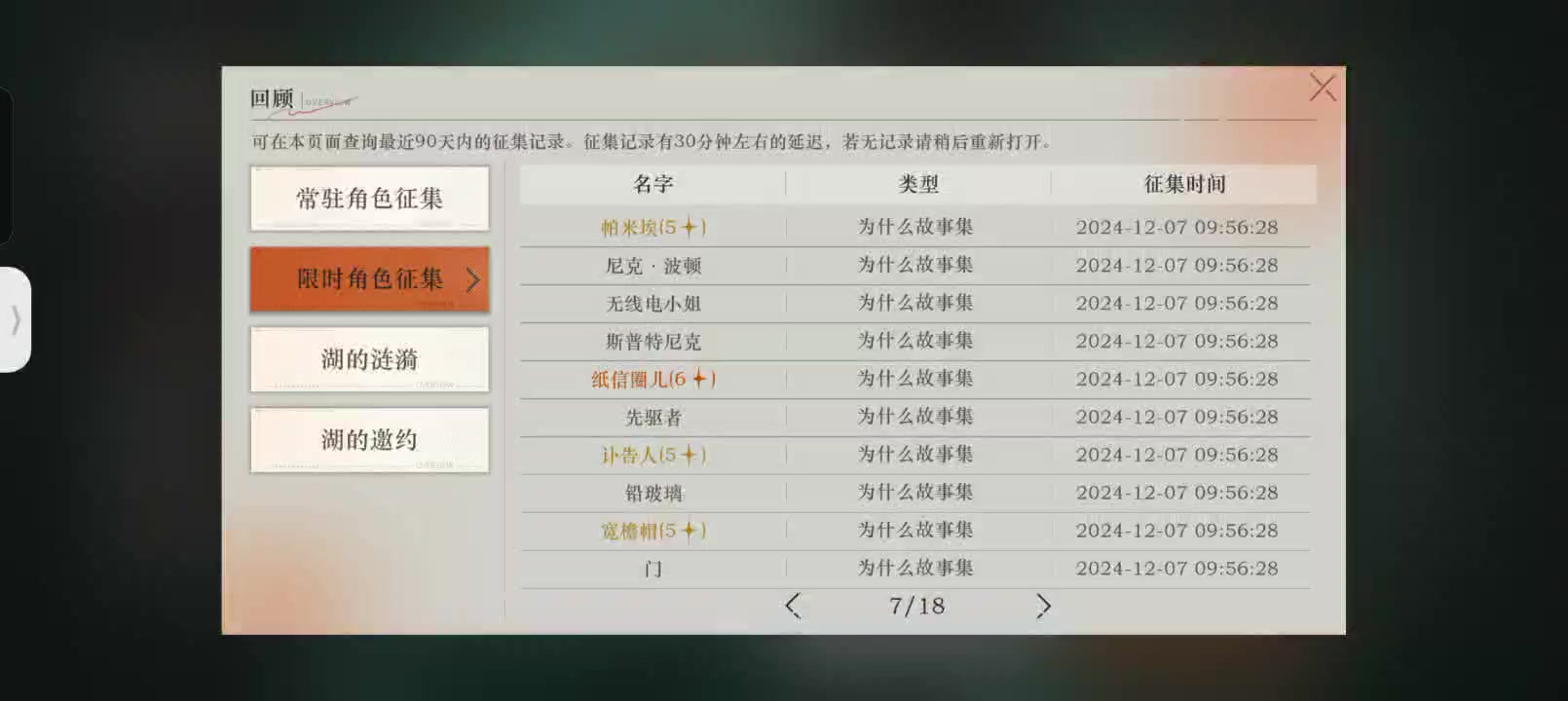 求大佬帮忙看看湖的邀约抽中金纺结1选那个角色[表情_微笑](滑跪)(磕头)#重返未来1999