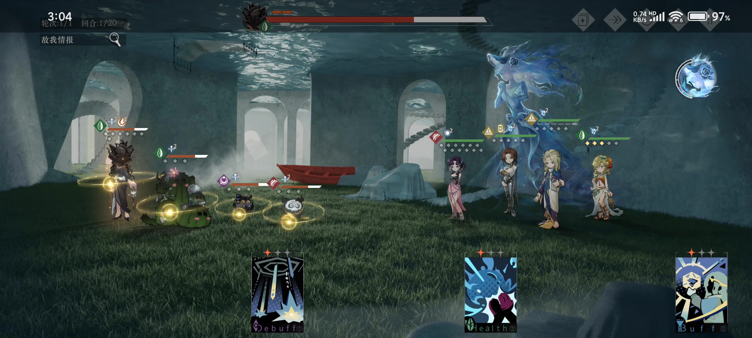 #重返未来1999 #重返未来1999攻略 这一关用多动的单体就是来打比较好,比如说曲娘红弩箭之类的。用北方打起来就有点麻烦。我一个朋友说可以直接用北方打死对面,但是对我来说还是太考验操作了(笑) 敌方失去最后一层无影无形的时候会获得两层弥留。讣告人每回合开始会消耗两层弥留给我们上debuff,卡卡尼亚的反伤不会触发无影无形。 我的方法就是先用北方把他的血打到只剩一层血皮。然后慢慢等讣告人把他的弥