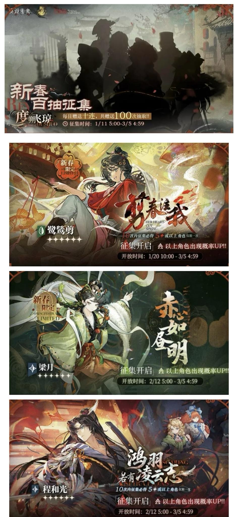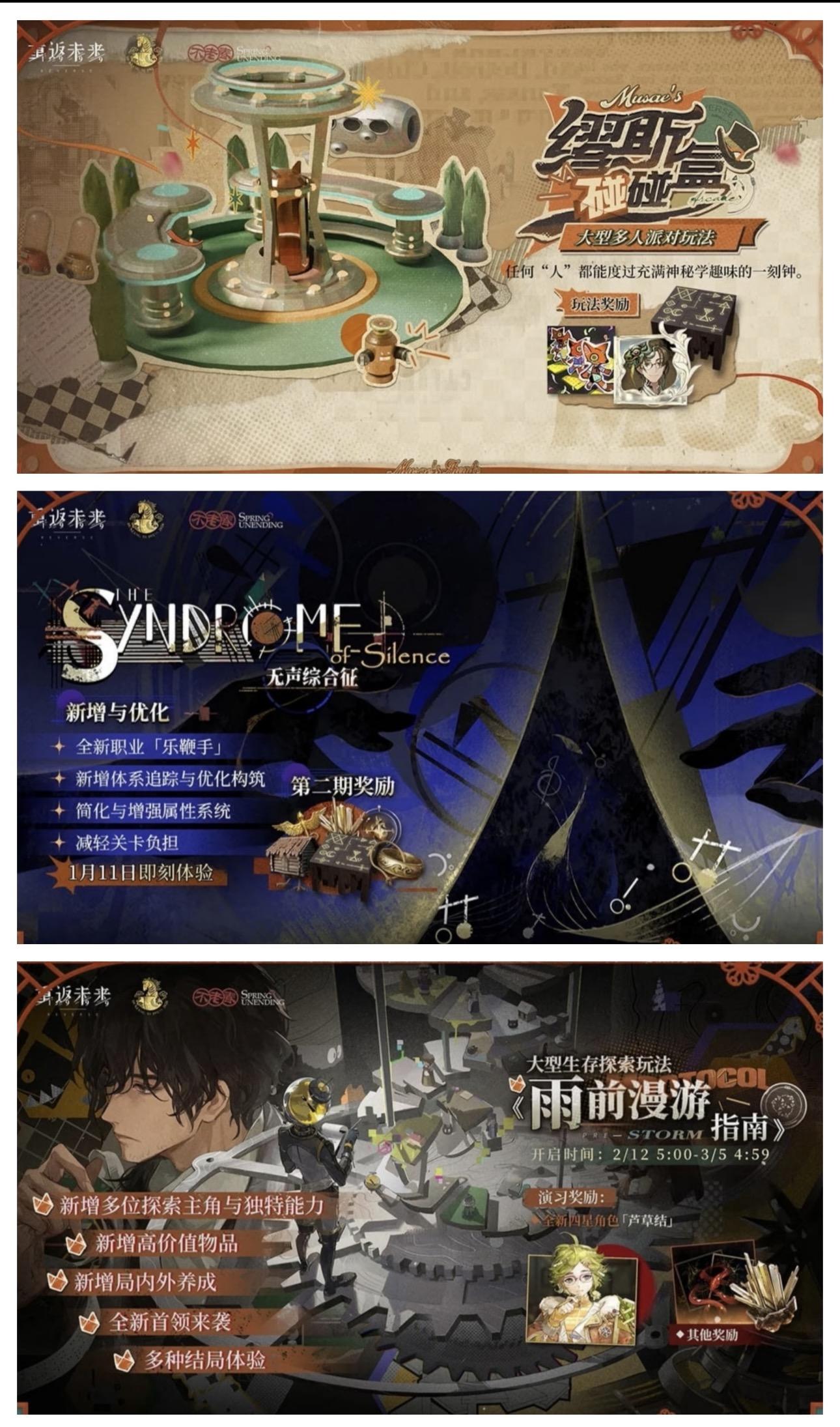 📢 重要提醒兑换码赶快用:1、鹭鸶剪剪纸课堂开课啦2、小程巡检巡检中3、1月20日新春特别版本上线4、魔精主包出道了🆕 新内容一览🎭 新角色 & 狂想系统新角色:鹭鸶剪(木系):启示/术阵定位,群体增伤型输出程和光(星系):追击/仪式体系,可连续行动芦草结(木系4星):生存辅助,群体增减伤狂想系统更新:梁月:追击体系增强牙仙:启示伤害复制6:DEBUFF效率提升+增伤