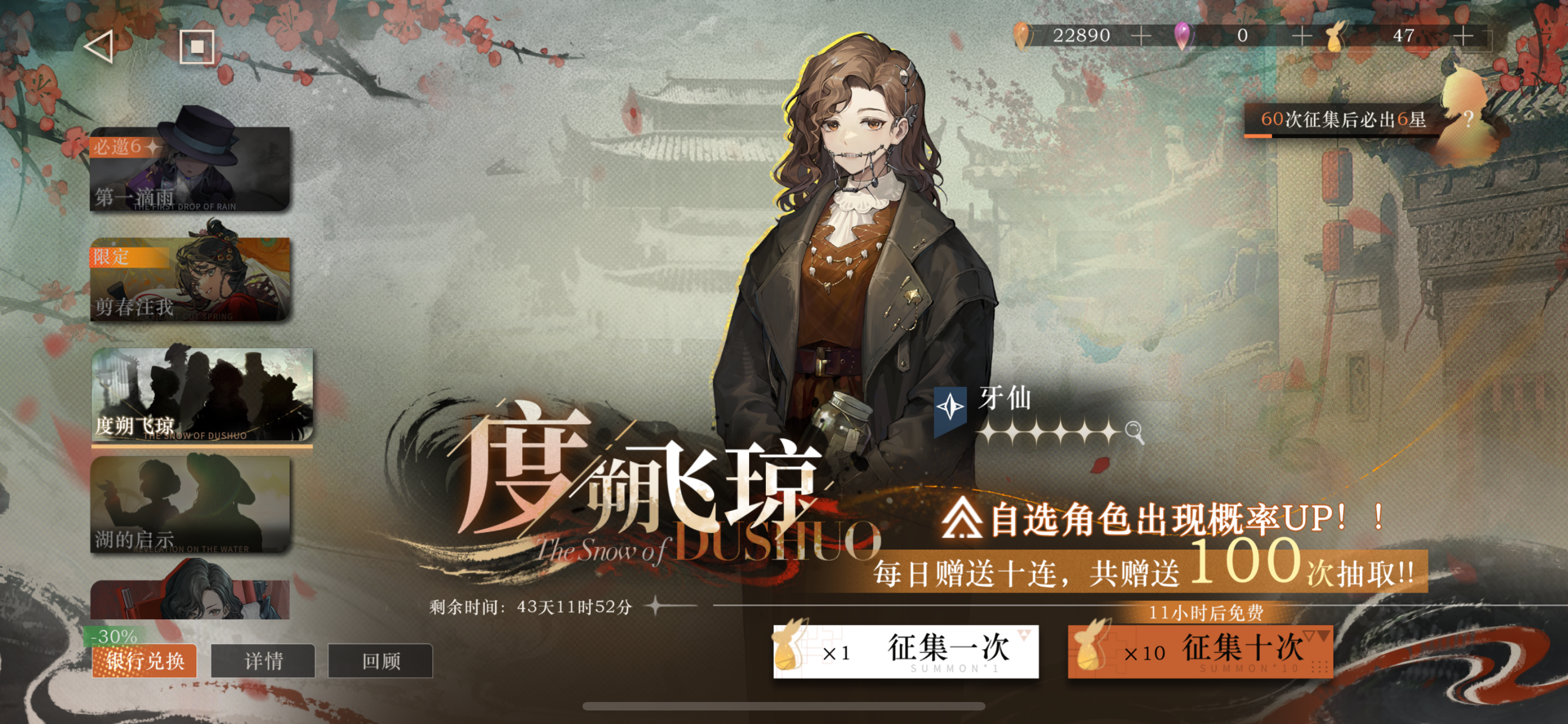 30抽出新年限定,送的100抽出了5个6星,CCCC66EMHM求组队重返未来1999是个好游戏