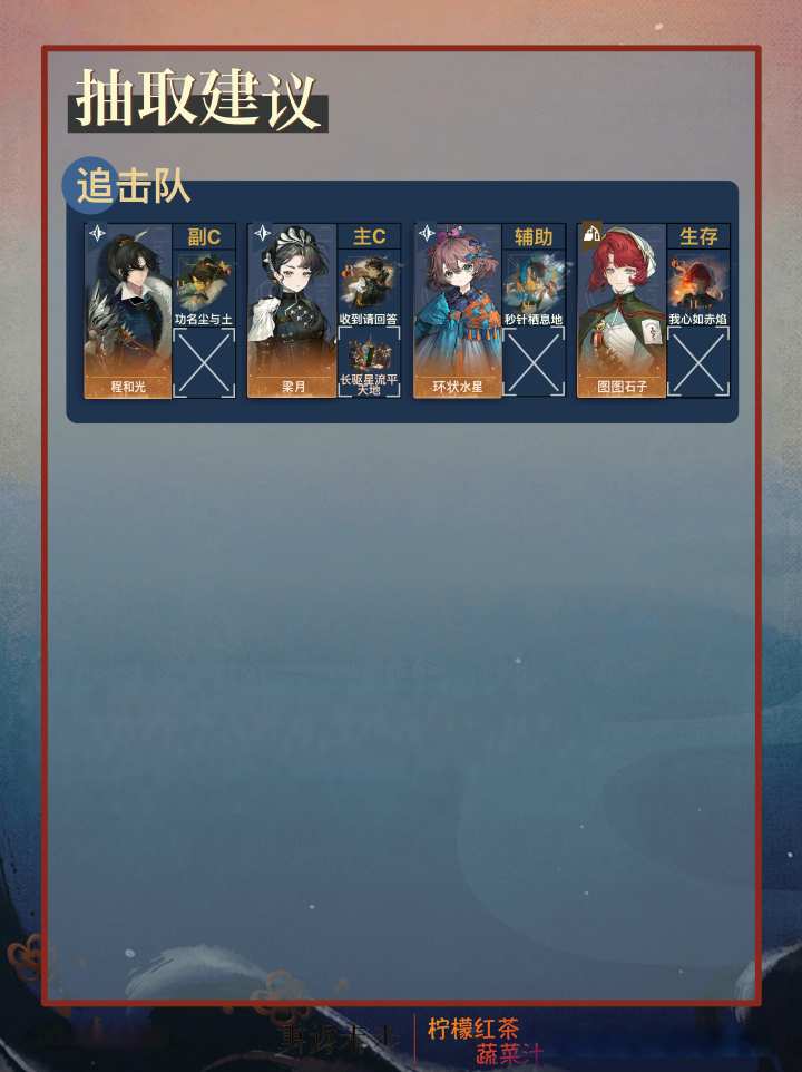 春节开的卡池很多,看见论坛有很多萌新在问该抽什么好,这篇帖子会给萌新司辰们一些抽卡规划和建议,帮助萌新们顺利度过开荒以及为后续的高难攻坚做准备观前特别提醒:玩游戏开心为主,如果有喜欢的角色抽就完事了,本帖是仅从强度出发做以参考我会分三个板块展开讲解,想看结论的话可以跳到帖子最后,下面就是正片了抽卡原则99的日常强度压力很小,强度需求主要集中在迷思海,臆想潮,鬃毛邮报,上图为游戏中的主流配队