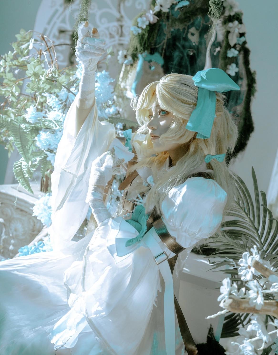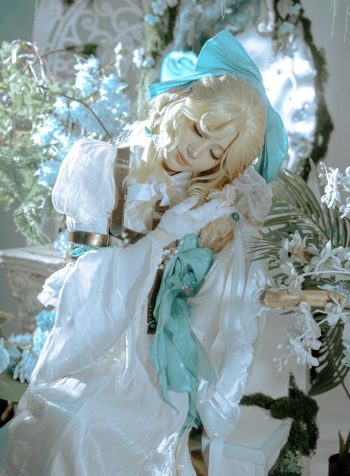 你这一身造型,就像从森林深处走来的光之精灵!蓬松的金发衬着雪白裙装,薄荷绿的蝴蝶结与藤蔓般的装饰点缀其间,把清新与圣洁完美融合。举手投足间,宽大的衣袖与裙摆在光影里流动,仿佛带着草木的芬芳。斑驳的花墙背景与你的造型浑然一体,仿佛下一秒就能听见林间的风声与鸟鸣。每一处细节都透着仙气,让人忍不住想要沉溺在这治愈又梦幻的氛围里。#重返未来2026新春特别版本