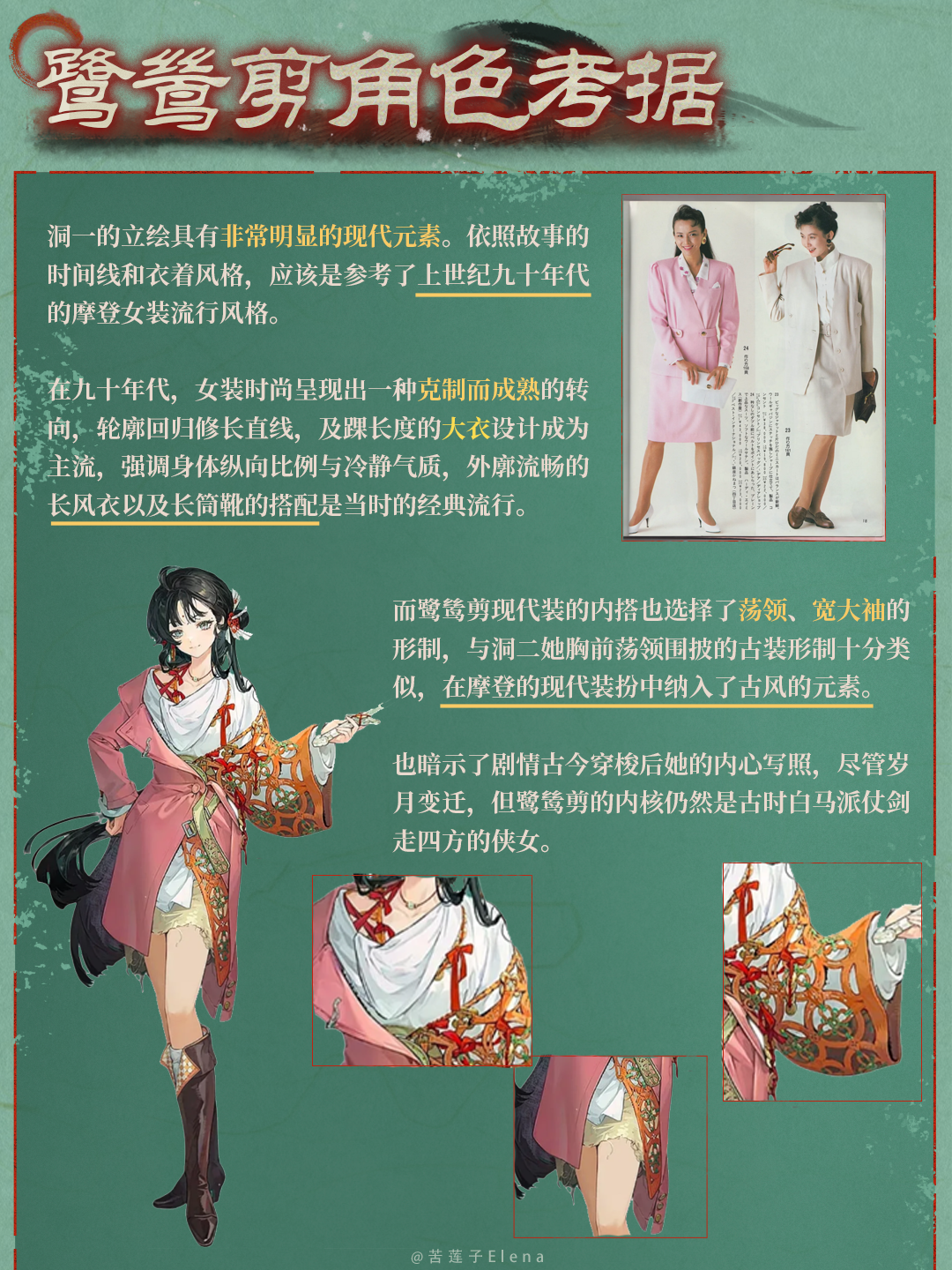 摩登套装与古风侠女的变化,古今交错的服饰风格。道家与剪纸,鱼灯与乡愁。 欢迎收看本期的鹭鸶剪角色考据!这是似乎是第一个1999里洞1洞2设计元素有如此大时间跨度角色,大家有没有看出她的设计锚点呢~ 喜欢本期考据可以点赞关注支持一下!祝大家抽卡十连双金~下一期是梁月的皮肤设计考据~敬请期待哦!#重返未来1999 #重返未来1999攻略 #重返未来2026新春特别版本