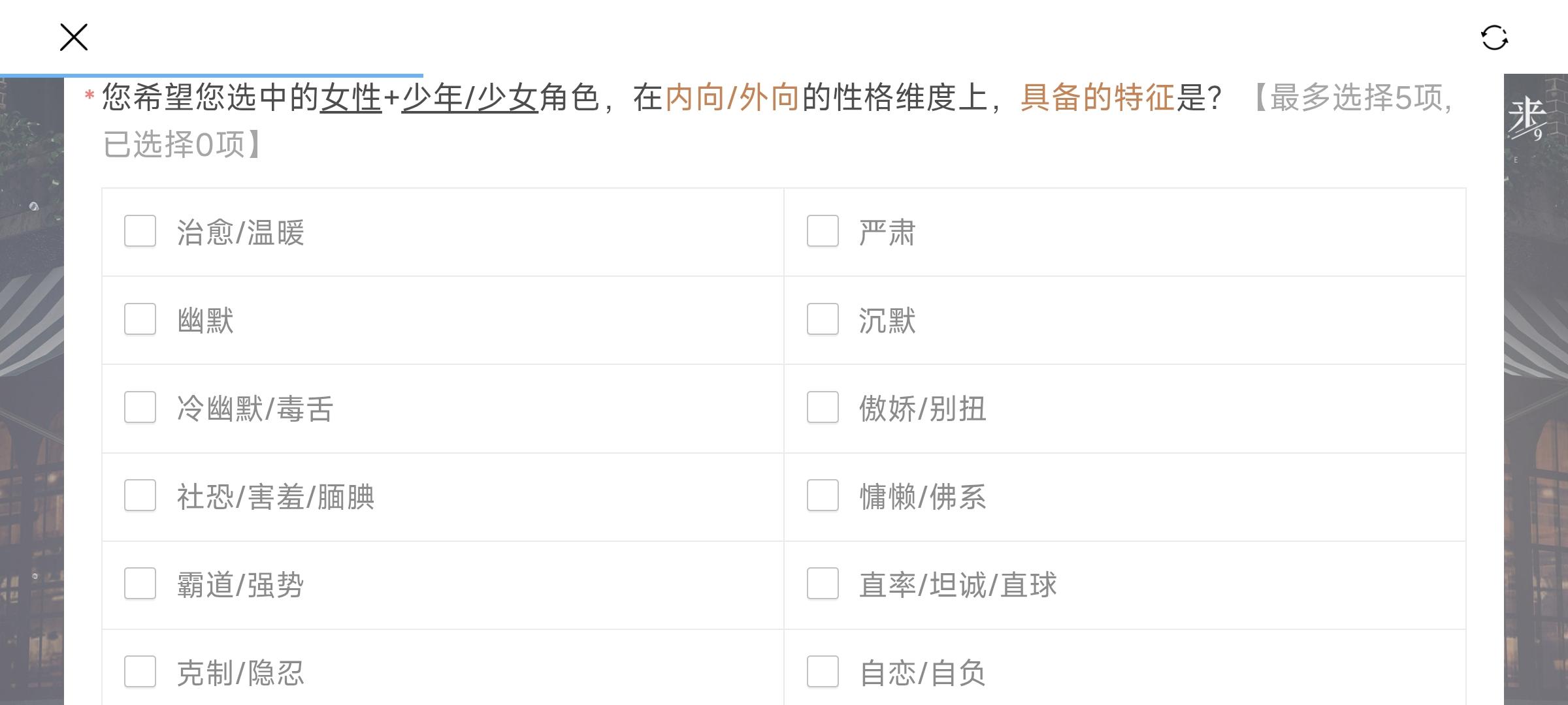 怎么这次的问卷调查还有这个环节?还问的这么详细。这是想出一个玩家们的oc呢,还是说想调查一下玩家们的xp呢。#浅评一下 #游戏日常 #游戏杂谈 #游戏讨论 #重返未来:1999 #重返未来1999 #今天游戏圈发生了啥