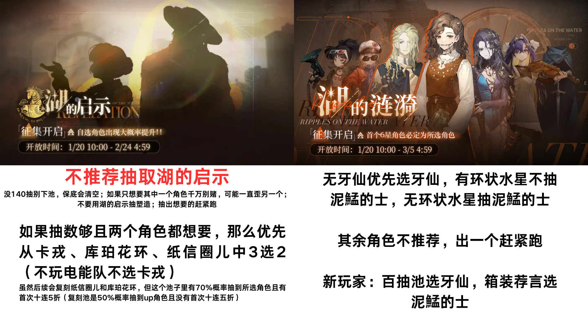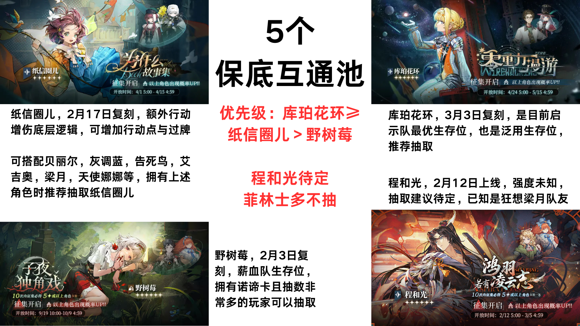 图2省流图3鹭鸶剪抽取建议图4百抽池抽取建议图5湖的涟漪、湖的启示抽取建议图6五个保底互通池(菲林士多、纸信圈儿、野树莓、库珀花环、程和光)图7梁月复刻池与限定复刻池#抽取建议 #重返未来1999 #重返未来2026新春特别版本 #重返未来1999攻略 ##重返未来鹭鸶剪 #牙仙