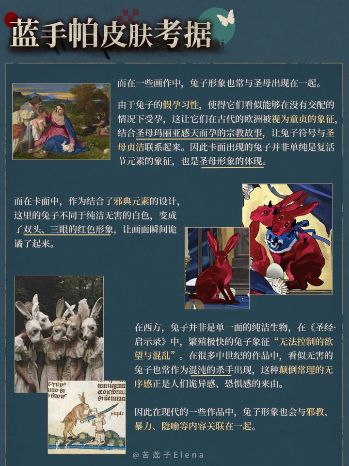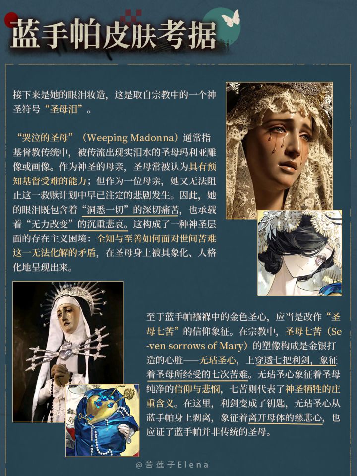 鬼圣母的诡谲,邪典的兔子,剥离母体的慈悲圣心。落泪的圣母,七重苦难,神圣的红与蓝。欢迎收看本期的蓝手帕皮肤考据!喜欢本期考据可以点赞关注支持一下!祝大家欧气满满,十连双金!我们下期再见~#重返未来1999 #绿松石蛇俱乐部 #重返未来1999考据