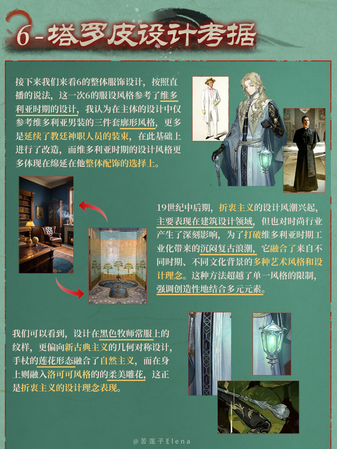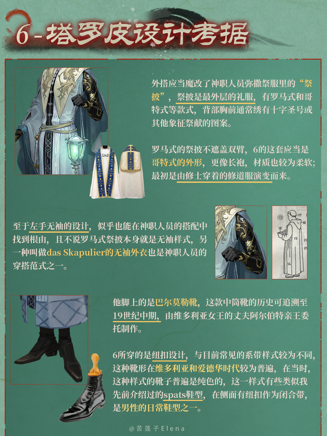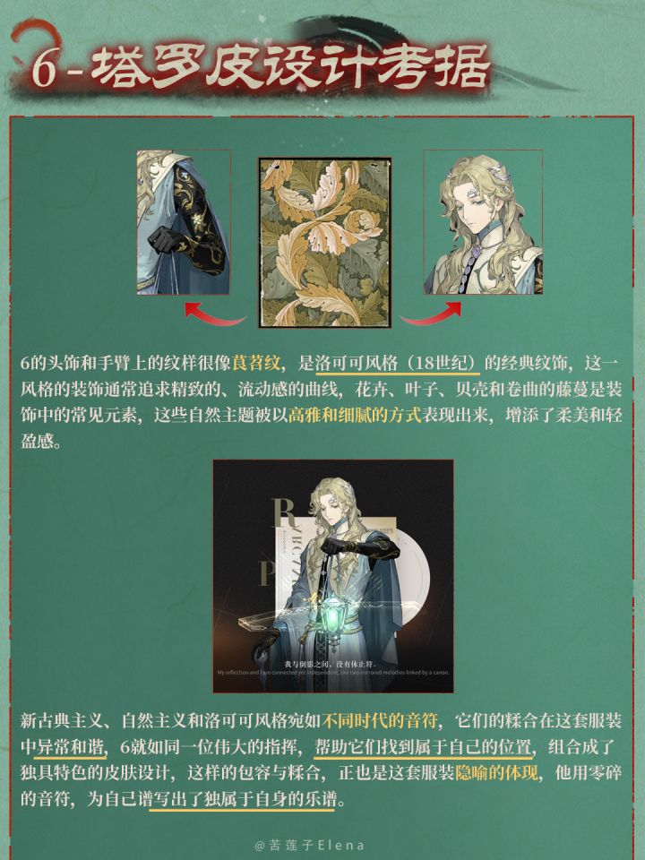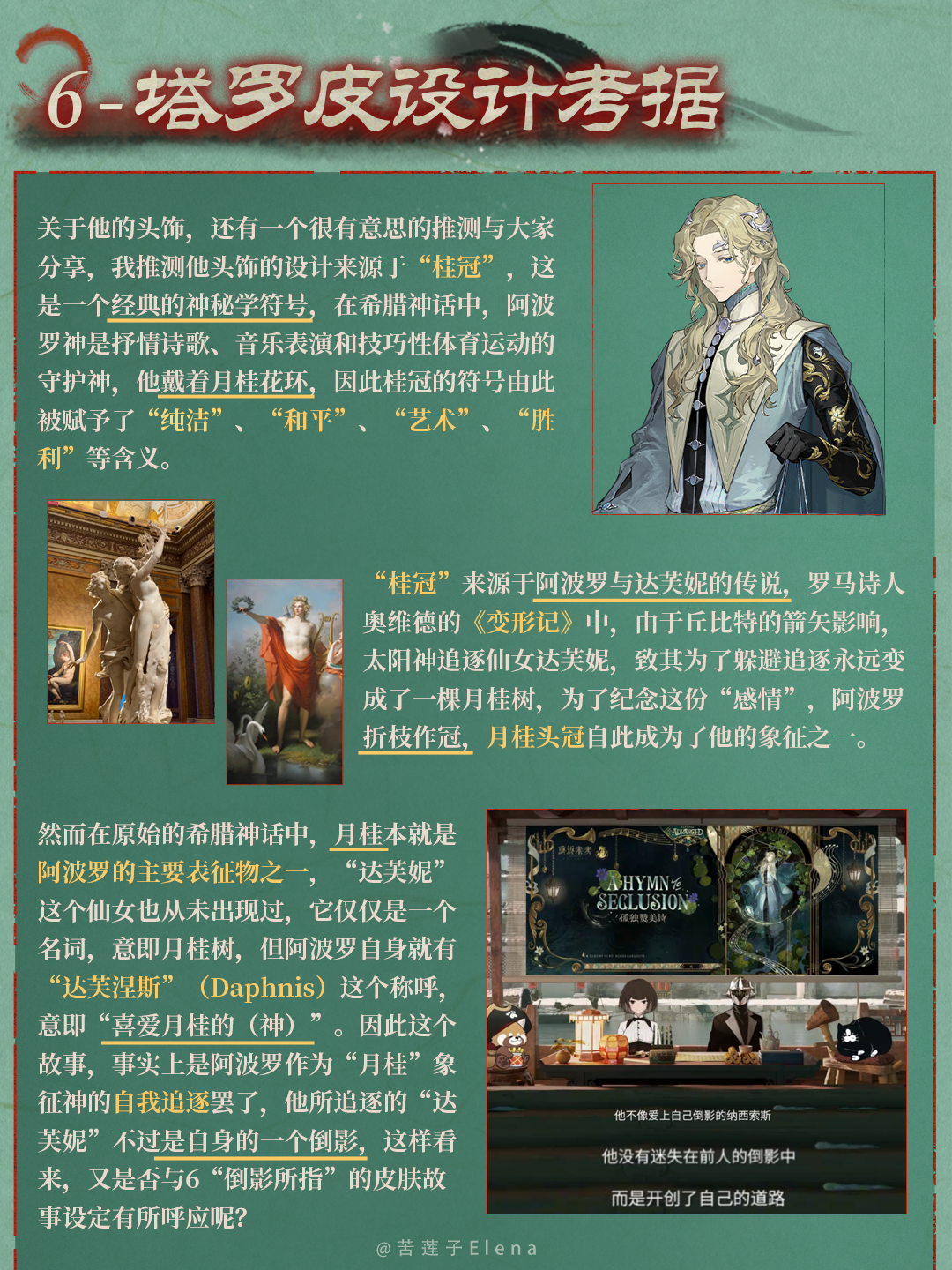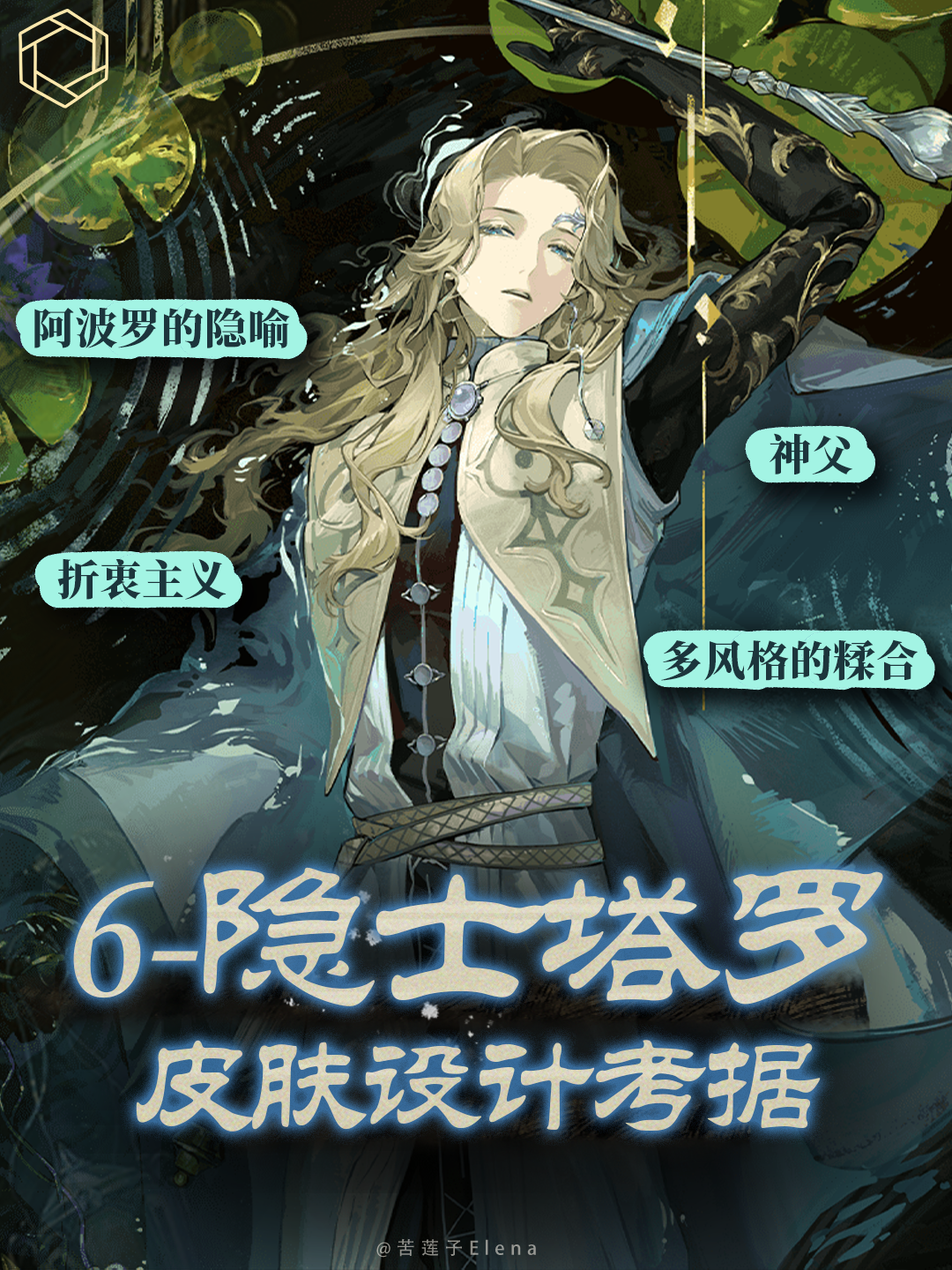隐士塔罗元素的去留,神职人员服饰的选择,维多利亚时期折衷主义的体现。多风格的完美糅合,桂冠与阿波罗的传说,倒影与命运的隐喻。 欢迎收看本期的6塔罗皮肤设计考据!恭喜我们6拿到3皮!水中倒影的意象选择也如此恰当…… 下期是野树莓的皮肤考据呢,敬请期待!创作不易,喜欢本期考据可以点赞关注支持一下!祝大家抽卡十连双金~我们下期见~o(〃'▽'〃)o#重返未来1999 #重返未来1999