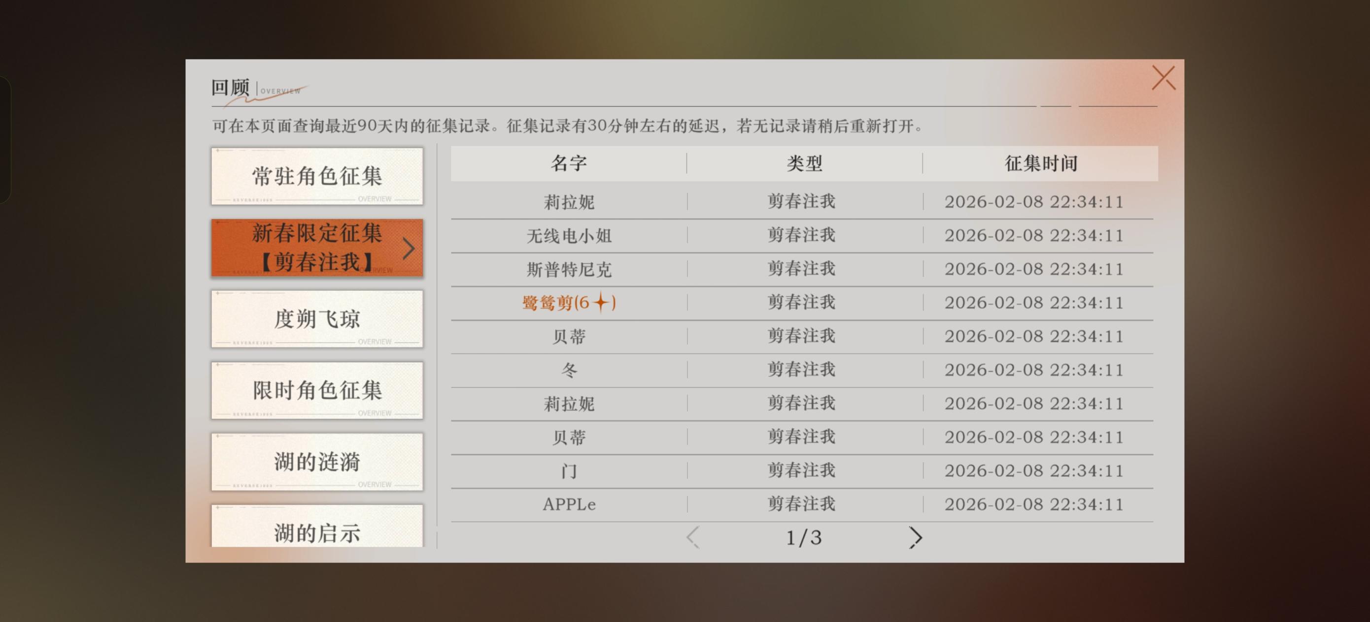 之前都歪了 想着重新开了个号 30抽四个六星 哇塞