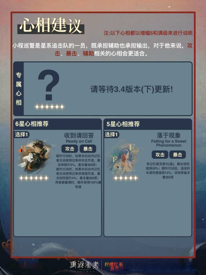 大家好呀!这次给大家准备的是「程和光」的角色养成&抽取建议。由于部分内容官方并没有出,笔记中如抽取建议,塑造建议,养成材料等并未写上去。等3.4版本(下)正式开始的时候,我会加快马鞭给补充完整,在此期间.请各位耐心等待,大家可以提前刷取微尘和利齿子儿,最后,制作不易,如果喜欢的话不妨点个三连支持一下吧~也祝各位司辰欧气爆棚,单抽出金,十连满塑!✨—————————————————