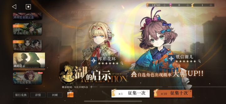 温馨提示:不肝不氪又非的玩家建议老老实实优先抽取鹭鸶剪组建木启队度过一个美好的开荒旅程,享受快乐游戏。希望本版本就组建2个队伍,能肝甚至能氪的自建号/抽数较多的初始号可以参考。另外,低氪零氪不建议抽取塑造,box宽度>深度。——————————————————————1、湖的启示池:选卡戎和库珀花环(❗️这个池子出一个up就跑)➡️出卡戎,度朔飞琼选告死鸟一队木启:🔸鹭鸶剪(主C,限