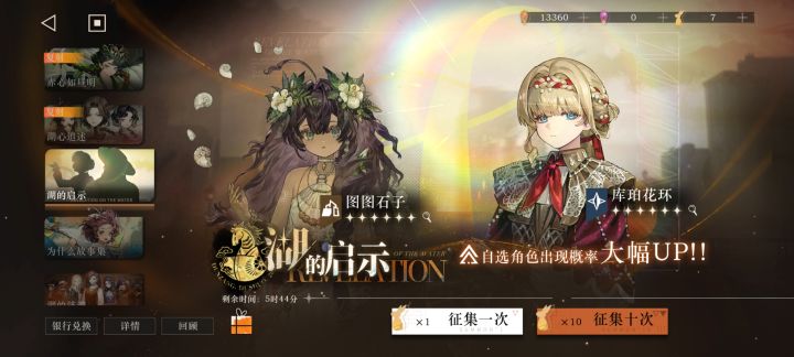五个兔兔俩都出了,本来想着不抽的,一看只有五个小时关闭了,还只要五个就能十连,就试了一下,没想到