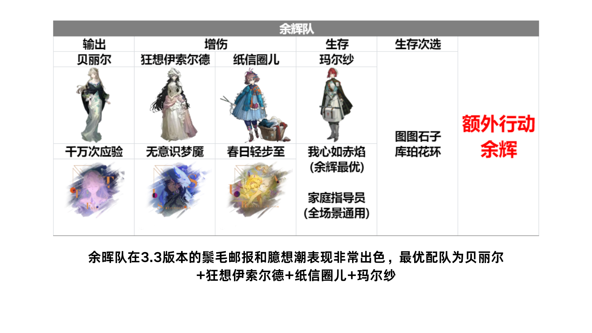 图2体系总览图3体系dpr一览图4余辉图5薪血图6灰娜图7告死鸟/灰调蓝主c图8启示图9露西图10刺杀图11狂想天使娜娜图12升阶图13虚构集仪式图14其余兽、木配队图15其余星、岩配队#重返未来1999 #重返未来1999攻略 #重返未来远征记 #重返未来1999配队