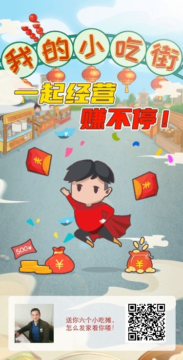 快扫描二维码加入游戏吧!!!扫描二维码加入游戏,每升级一个5星摊位找我领2元红包,一共六个摊位是12。记住,每升级一个五星领一次!!!