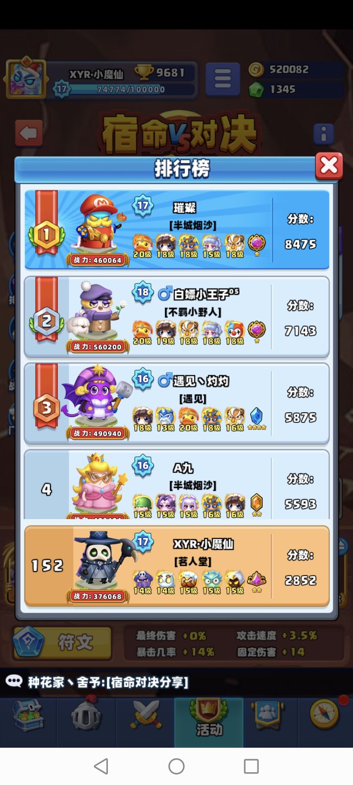 宿命对决更新了,引入了战力系统,并且是合作模式。我愿称之为勇者试炼和以前狩猎的缝合体。我直接说结论!不打扰大家。1.门票不能白嫖,只能氪金买,价格嘛不便宜。2.粉尘有用了,可以提升战力。3.战力影响非常大,假如玩家是800万战力,怪物战力涨到900多万玩家就打不动了。如果是80万战力,怪物90多万战力就打不动了。4.阵容其实相对不关键,无论是鸭子,枪差不多都是1400多积分,回合数130多