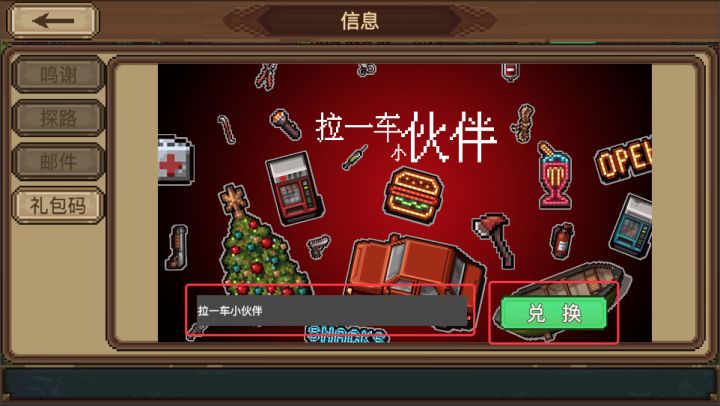 本次更新,新增加了俩个系统,一个是邮件,另一个是礼包码。下面就来介绍下,具体的操作方法。输入:拉一车小伙伴再点击兑换,兑换成功后,可查看邮件,领取礼包。