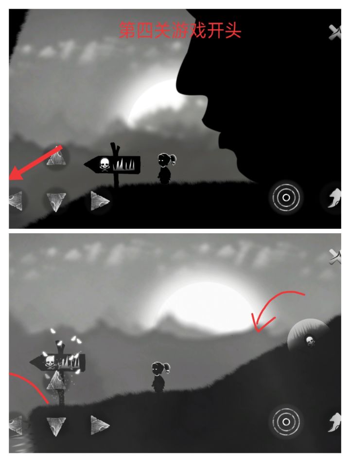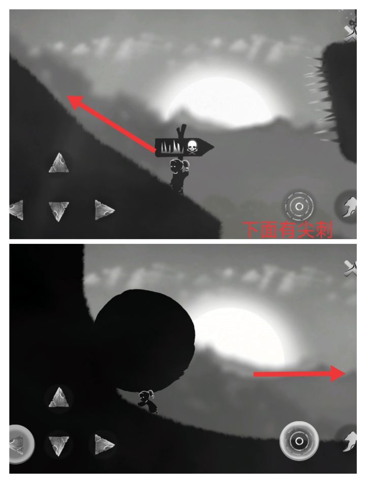 《endings 》第四关攻略😌学会像猿猴一样荡藤条以及洞中躲避(メ`[]´)/①跳跃躲避路上的小骷髅,继续向左走至大球旁。②将大球继续向左推,推至斜坡使球能因重力向下滚动。这时我们操纵小女孩向右逃跑③跑进小洞,等球滚过后再继续向右行驶④大球进入尖刺坑,踩球向右越过尖刺,继续向右行驶⑤来到藤条边开启人类返祖现象,学习像猿猴一样荡藤条。注意操纵方向键,使女孩重心倾斜以便离右边的藤条更近⑥抓住最右边即最长的藤条。向上攀爬⑦爬至顶端向右跳跃至平台。将小球往右推落⑧推落小球后向左抓住刚才的藤条,向下攀岩回至藤条右边的平地⑨将刚才落地的小球向右推至木头上。使女孩站在倾斜的木条上跳跃抓住右上方的藤条⑩继续荡藤条。结束后进入第五关🙏