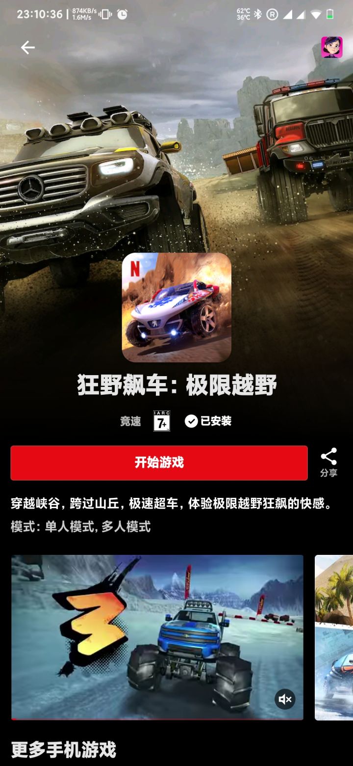 车辆全解锁,只能玩个人生涯,而且完成一圈后不得星星⭐,去B站搜《狂野飙车:极限越野》离线版就行了#游戏安利#单机游戏