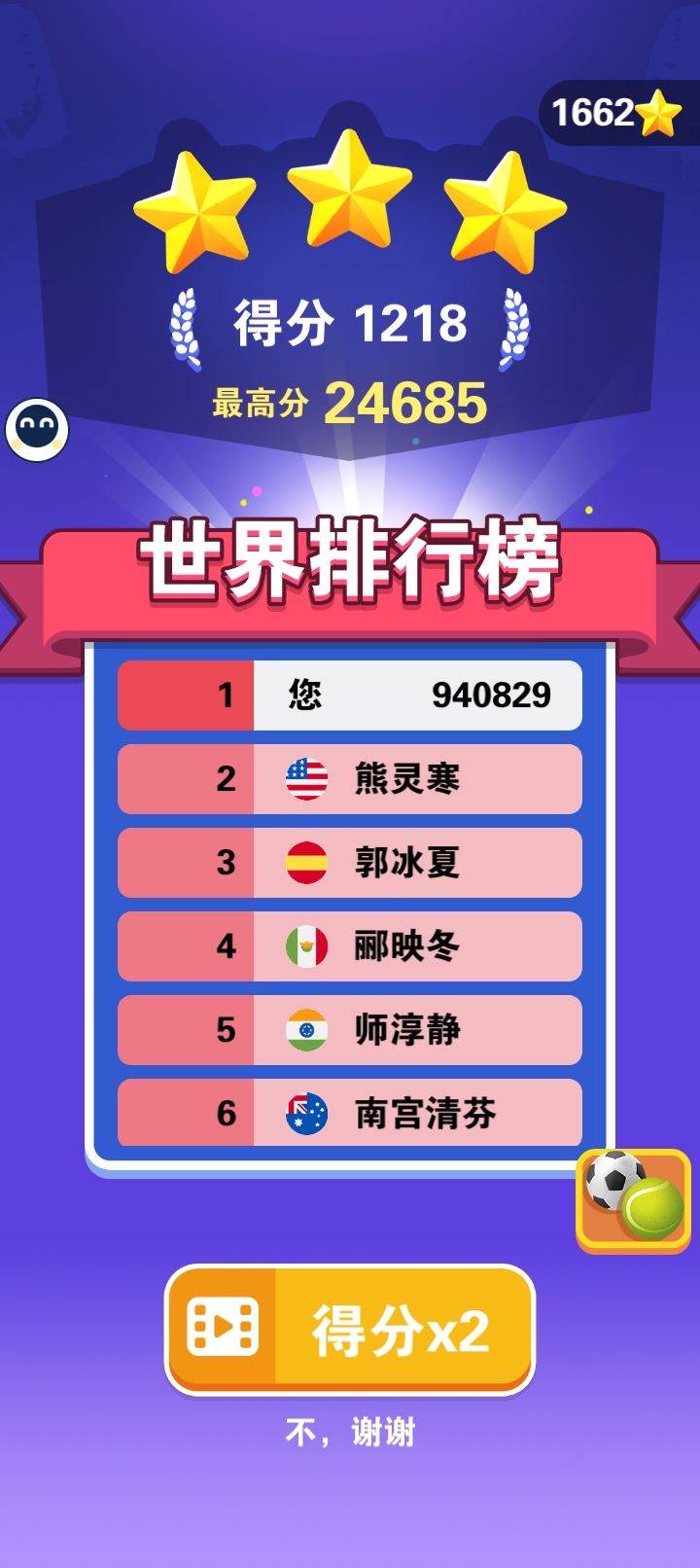 1国一#球球你加倍