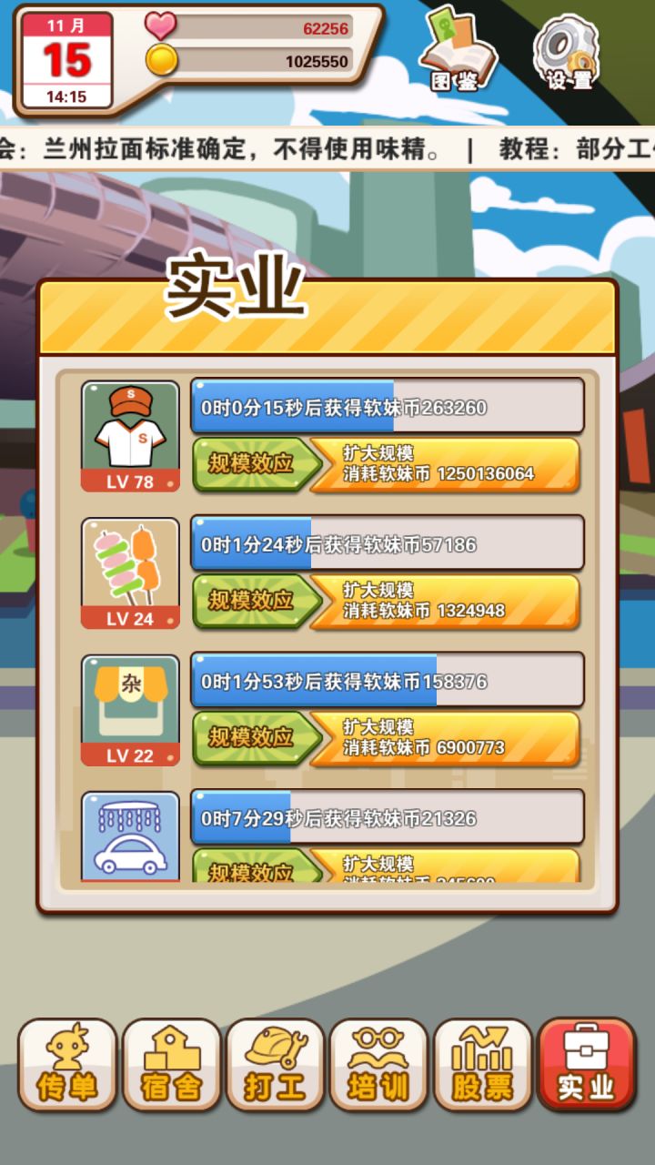 发传单那个功能无聊而且没用 我就刚开始发了一点 就前面几个人物有用 后面都是废话 你们可以改成每解锁一个人物加一点工资 实体店多加钱啊 宿舍股市的 要不然谁发传单 那这个功能有什么用