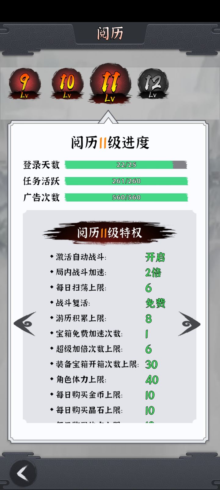 ohayoo这家厂商是家很特别的厂商,他们不专注于逼氪,但属实是把广告模拟器给弄明白了。 这游戏,每天的广告是有上限次数的,我估计了一下,大概每天能看50次左右吧。 但实际上,你可能只会看不到20次。 游戏里分了很多武器,单手刀剑,双手剑,长杆斧,长杆锤,不同的武器有不同的招式。(不过看起来似乎都差不多) 每次过关后可以选buff或者技能。 目前这游戏我用来打发时间是很合适的,这游戏不适合无法将手机长时间拿出来的人群以及不适合不喜欢广告模拟器的人群。