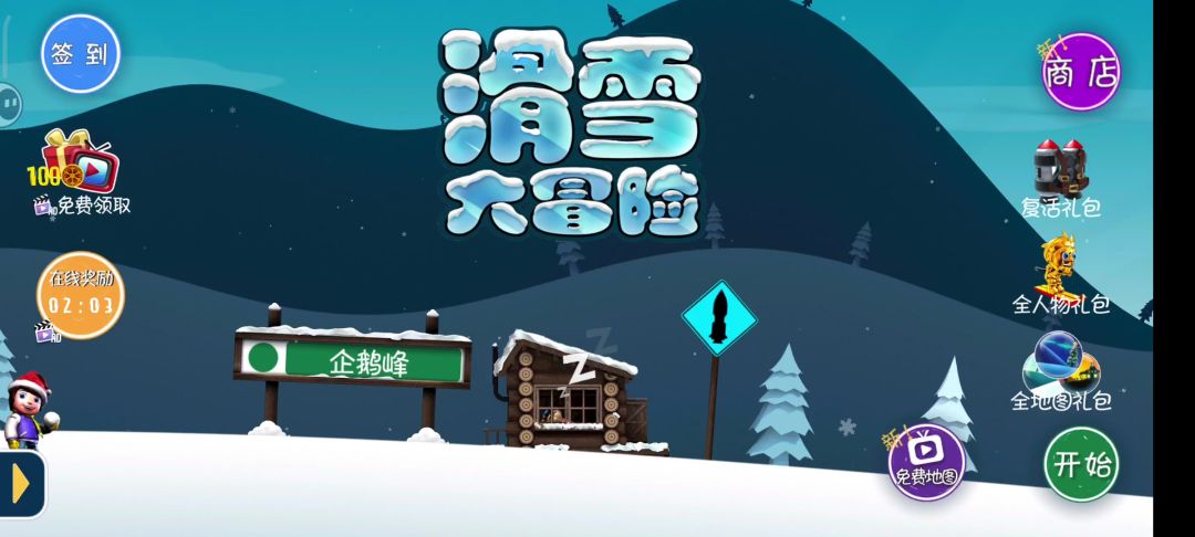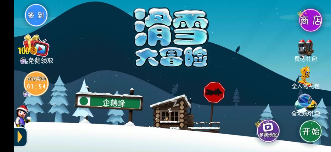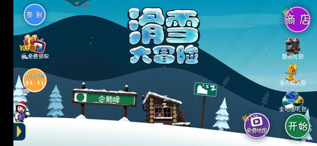 增幅技能: 雪地摩托之翼:提升雪地摩托的跳跃距离 加速木屋:进入发光木屋获得橙色加速 复活冲刺:复活一次(因Bug意外获得) 不使用道具 #滑雪大冒险