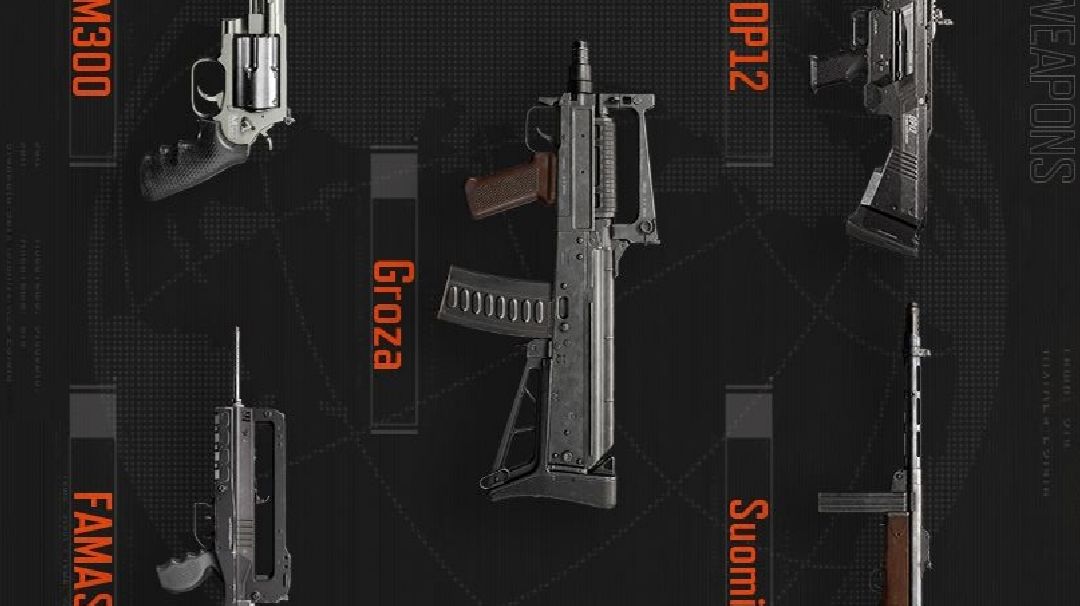 应该没人比我更快了吧? dp-12 一款由美国标准制造公司所研制和生产的无托泵动式双管霰弹枪,发射12铅径霰弹。 泵动式连发,载弹数为14或16。参考吃鸡的DBS。 SUOMI 索米1931冲锋枪,芬兰上世纪列装枪械,口径为9×19,射击速度大约900,考虑到历史背景,该枪械可能会存在较大弹鼓。 Groza 即OC-14,苏制雷电武器综合系统,口径为9×39,同vss。该枪械也存在7.62口径改型