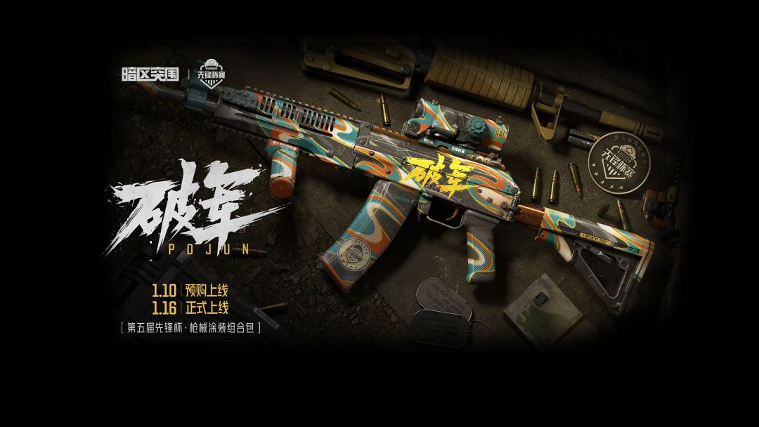 号外!号外!第五届先锋杯限定枪皮来了! 第五届先锋杯总决赛环节即将在1月17-18日进行,而大家期待的本届先锋杯专属的枪械涂装,也正式揭晓——「破军·RPK16轻机枪」,除了枪械主体,组合4款B级枪皮、总计22个配件涂装也将一同打包限时售卖,现参与预定还可额外选择九强战队专属订制配件涂装。 这款破军皮小生简直喜欢得爱不释手,现在就随小生一起欣赏一下这款枪械涂装吧! “枪” 占 C 位,“破” 局之