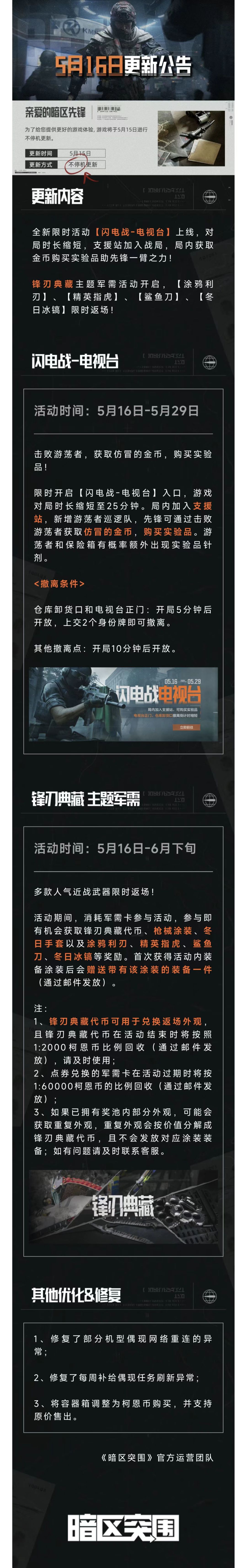 【更新公告】「闪电战-电视台」来袭!人气近战武器限时返场!