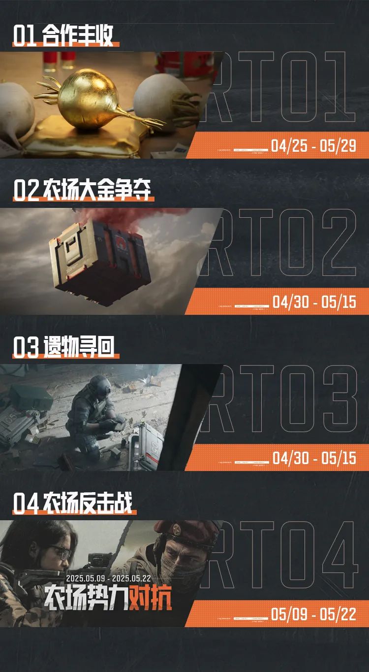 活动倒计时提醒!还没参与的先锋抓紧时间,福利好礼别错过! 合作丰收 活动时间 2025年4月25日-2025年5月29日 活动说明 活动期间,农场、北部山区和前线要塞出现售卖机!在上述地图内的行李箱、运动包将限时产出萝卜!通过售卖机出售萝卜可获得萝卜积分,累计萝卜积分最多可得128万柯恩币! 活动奖励 参与活动累计萝卜积分,最高可获得128万柯恩币奖励! 获得积分积累进度,还可解锁金萝卜雕像,激活