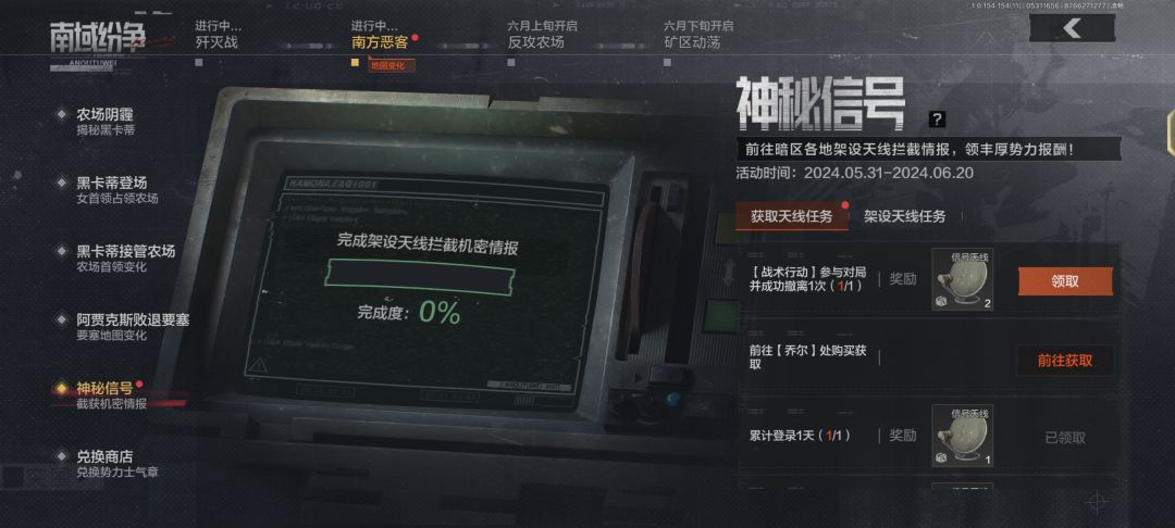 暗区突围开始了福利活动分别是“神秘信号”和“储蓄罐”活动,活动内容简单,神秘信号活动只需要每日登录参与对局就可以获得信号天线,带着信号天线进入对局就到达指定地点就可以完成任务,任务完成给予大家自选势力币奖励,实力币能在联络人处兑换许多的优质武器弹药装备。 储蓄罐活动只需要对战存活时间足够就可以获得抽奖机会,可以直接抽取科恩币,是非常不错的福利活动#暗区突围
