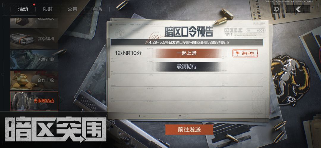 这次的活动之一无限邀请函,在我全部整完后说说我的客观感受吧。首先呢,以这次的活动来讲,算是比较一个好的活动,在4月21号至5月5号在综合板块发“一起上岸”就可以获得一份科恩币礼包,最高还能获得58888科恩币。而另一个就是收集无限的邀请函,这个邀请函基本上在对局中的衣服里有概率刷出,不过概率比较低。所以这里我也推荐大家去强化捡,因为比普通的爆率高很多。做完还可以白拿一套夹克,还有一些装扮券,可见得