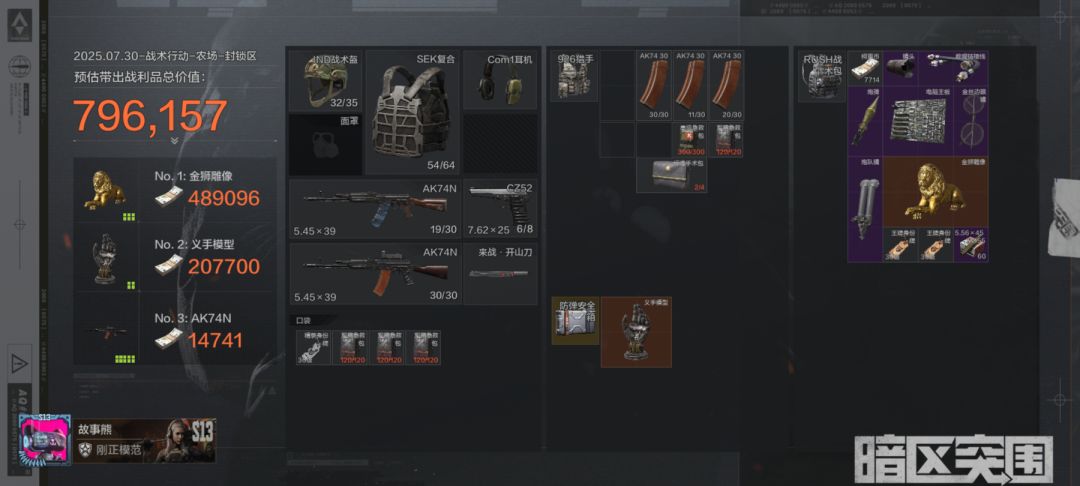 农场封锁区作为物资比较分散,且出货率较高的图,深受各个特勤人员的喜爱。但同时,里面有很多五六套的肌肉猛男满编队,独狼玩家与其硬碰硬肯定是不现实,那么,我们可以化身老鼠人,一点儿一点儿搜刮,挣到钱直接跑,十几分钟就能挣十万,按照时间算,出货率要比北山屠边要高得多。 —————— 首先我们要搭配2w的入场装。 我的选择如下: 头盔:二战老兵头(1000块) 背包:中型登山包(800块) 护甲:准新特勤