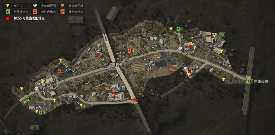 各位先锋,大家好!欢迎来到新一期的《暗区经济学》,我是老皮。农场作为所有先锋初入暗区时接触的第一张地图,它的面积是比较小的,结构也相对简单,有利于新手更快地学习和上手。但地图面积较小会让出生点和资源点间的距离较近,发生遭遇战的机率也会更高。今天我给大家献上一份农场地图的简介,帮助大家更快上手。 * 视频内容与上线版本存在一定差异,仅供参考,具体信息以图文为准 ◆ 农场东部与西部价值区域 ◆ * 农