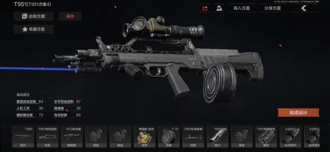 这个方案还不错。 枪口:安装T951消音器来降低开火声音,提升隐蔽性。 瞄准镜:对于中距离作战,推荐使用2倍镜;而近战则可配备简易红点瞄准镜,以便快速瞄准目标。 托腮板:这是一个重要的配件,因为它能够显著改善垂直和水平后坐力控制,使射击更稳定。 镭射器与前握把:添加三面轨并装配快速镭指镭射器,同时选择轻便前握把。