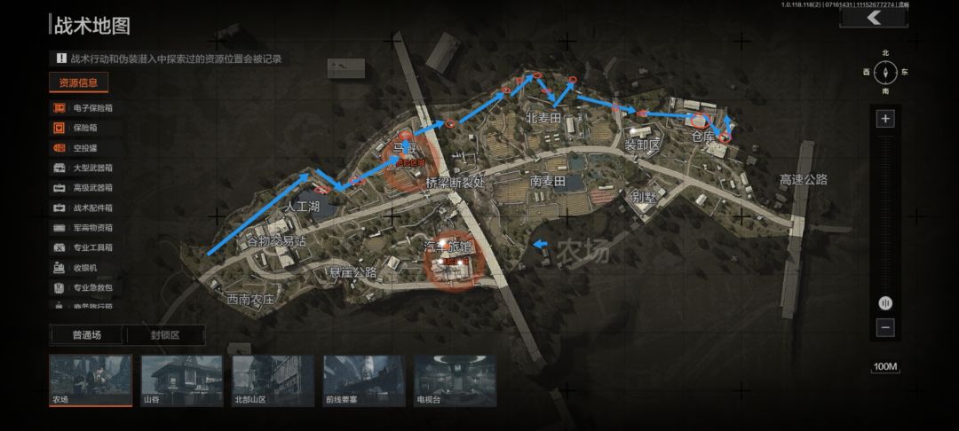 【暗区攻略】萌新入门七-地图篇 地图篇(物资点和出生点) 目前暗区主要有五张地图, 农场(中小型室外) 山谷(中型室外) 北山(中大型室外) 军械库(小型室内室外结合) 电视台(小型室内) 物资点(一些必搜物资): 高价值物资(能出大金,钥匙,热成像瞄具) 保险箱和电子保险箱(出金概率最大) 白色抽屉(出金钥匙概率极大) 白色和红色旅行箱(可能出情报和金钥匙) 三种衣服(蓝色的蓝领工装 绿色的普通