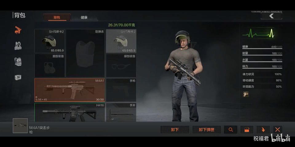游戏中的食物都有恢复体力的作用,在你奔跑过后,体力清空,你可以通过食物来快速恢复体力,但是有体力多少与启用时间的区别,需要认真分辨,牛磺酸是回体力的神物。镇痛效果的药除了移出损坏的疼痛效果外,还可以让视野变亮,在黑暗环境使用再适合不过。大部分药物会减饥饿与水分,大部分食物会减水分,最万能的仍是饮料。下腹被打黑会持续掉血,手脚创伤,创伤部位则会持续流血,并且会发展成损坏,没绷带可以一直打药,有绷带赶