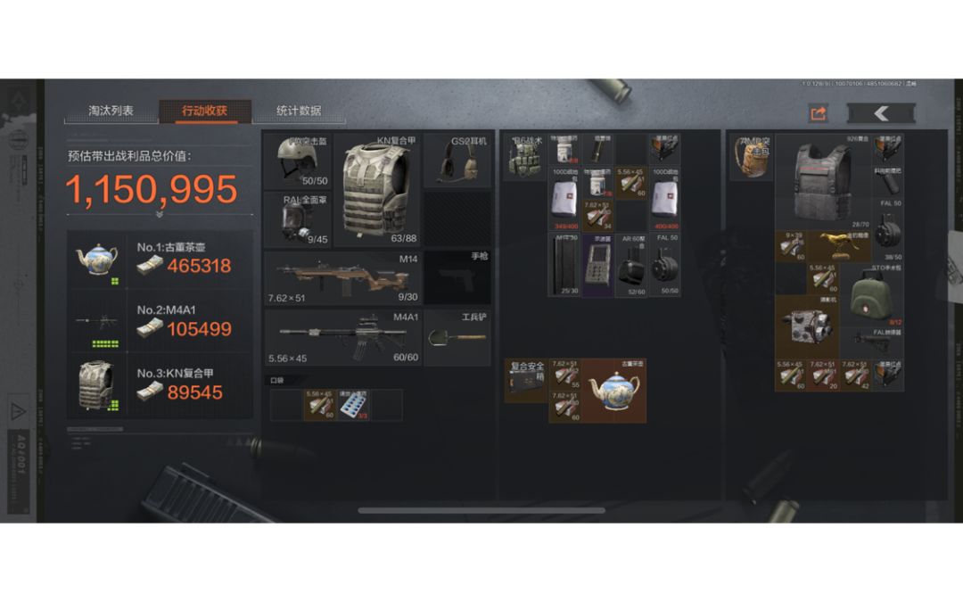 武器:m14 弹夹20容量+61弹 备用弹夹30容量+80弹61打人 80清AI 装备选择: 刚刚好筹够五万 甲进去随便杀个人机 就有 这套装备加凭证+子弹成本在14万左右 6格保险来说很容易回本 就算死了只要保险填满 基本上不会亏太多 开局直奔离你最近的保险 炫完第一个保险以后 就蹲下静步转移 视情况 转点去其他保险 个人建议非必要不要进中控 除非真的很近 比较建议 后期制作室和剪辑室 一定要压