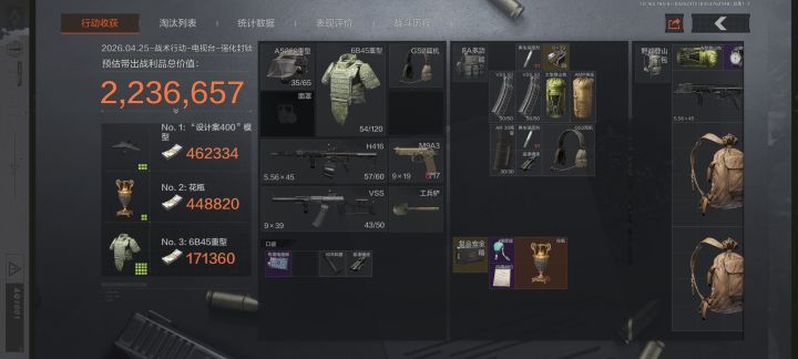 一个4套棺材包,加120发5级子弹,两颗进攻,两颗烟,再来两瓶水,54万。54万???????。。。。。。我承认还是暗区这个游戏太优秀了,优秀到已经不是人能理解的程度了,在强封一局冒着高强度风险捡垃圾几乎摸不出20万,撤离概率不超过百分之五十的环境下就这物价?这还只是5级子弹小全装,遇见六套就是路边一条,没别的意思就想问问官方你们那动不动就像大姨妈一样的爆率,升来降去真的不考虑考虑玩家的实际体验吗