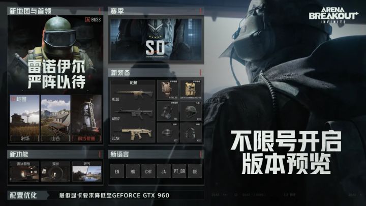 上端游,打硬仗!8月13日,暗区突围端游海外版《Arena Breakout: Infinite》不限号正式开启!这个赛季将为各位先锋带来全新前线要塞地图、多款新武器以及装备,新增淘汰回放、观战视角功能。此外,最低显卡需求已全面优化,降低至GEFORCE GTX960。